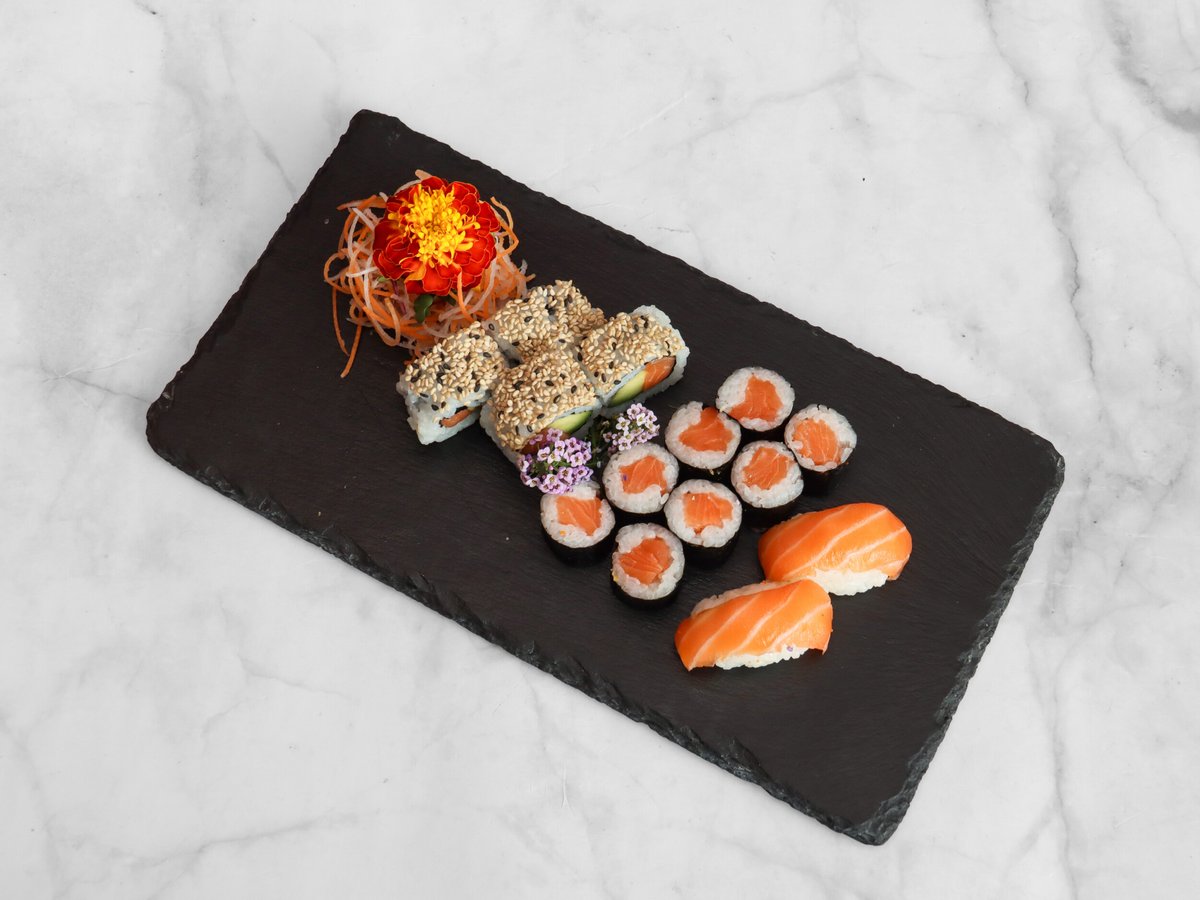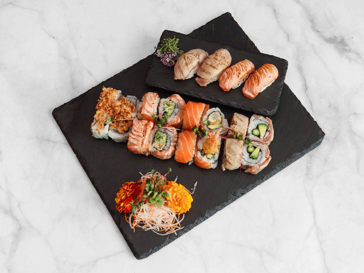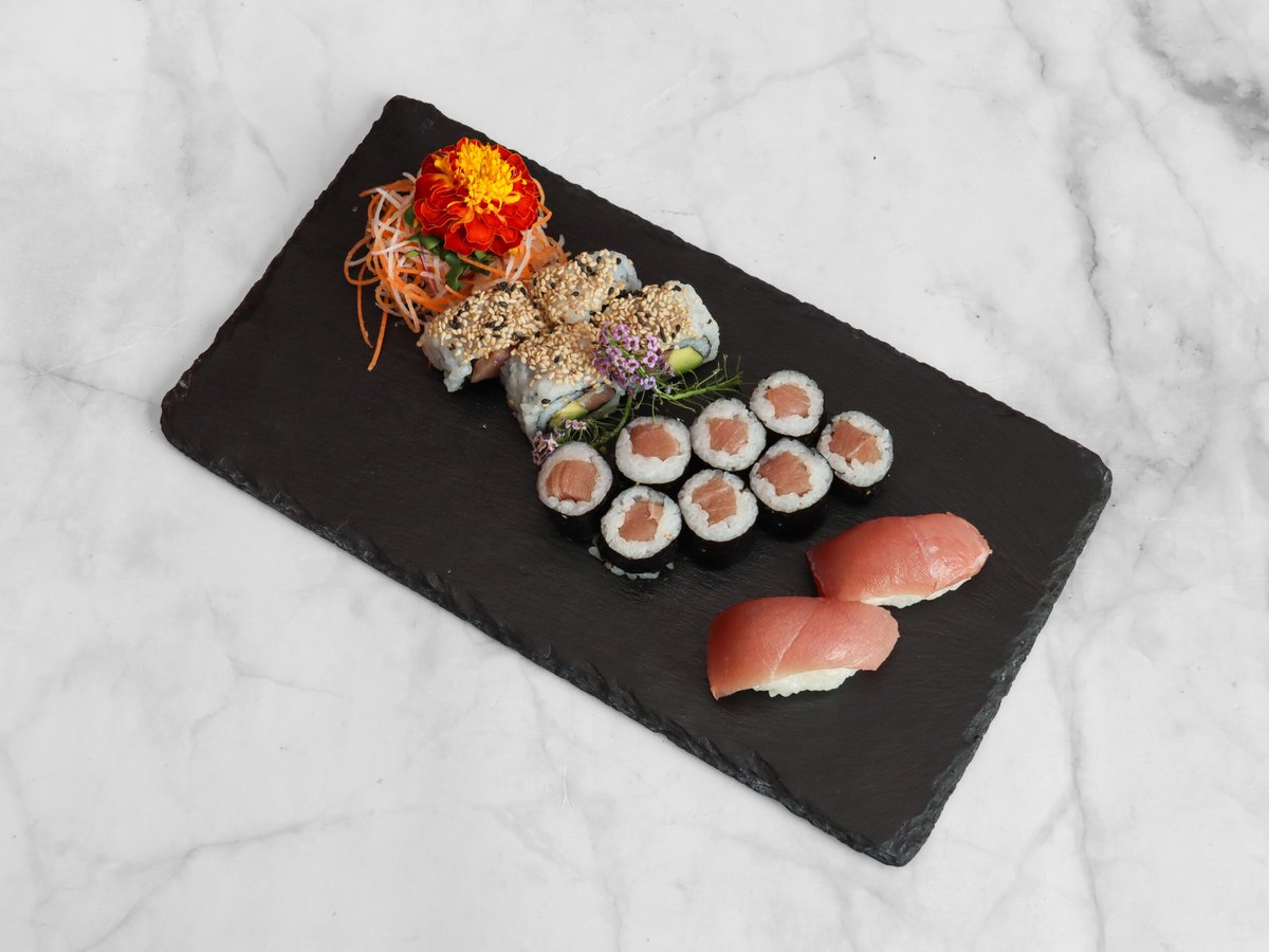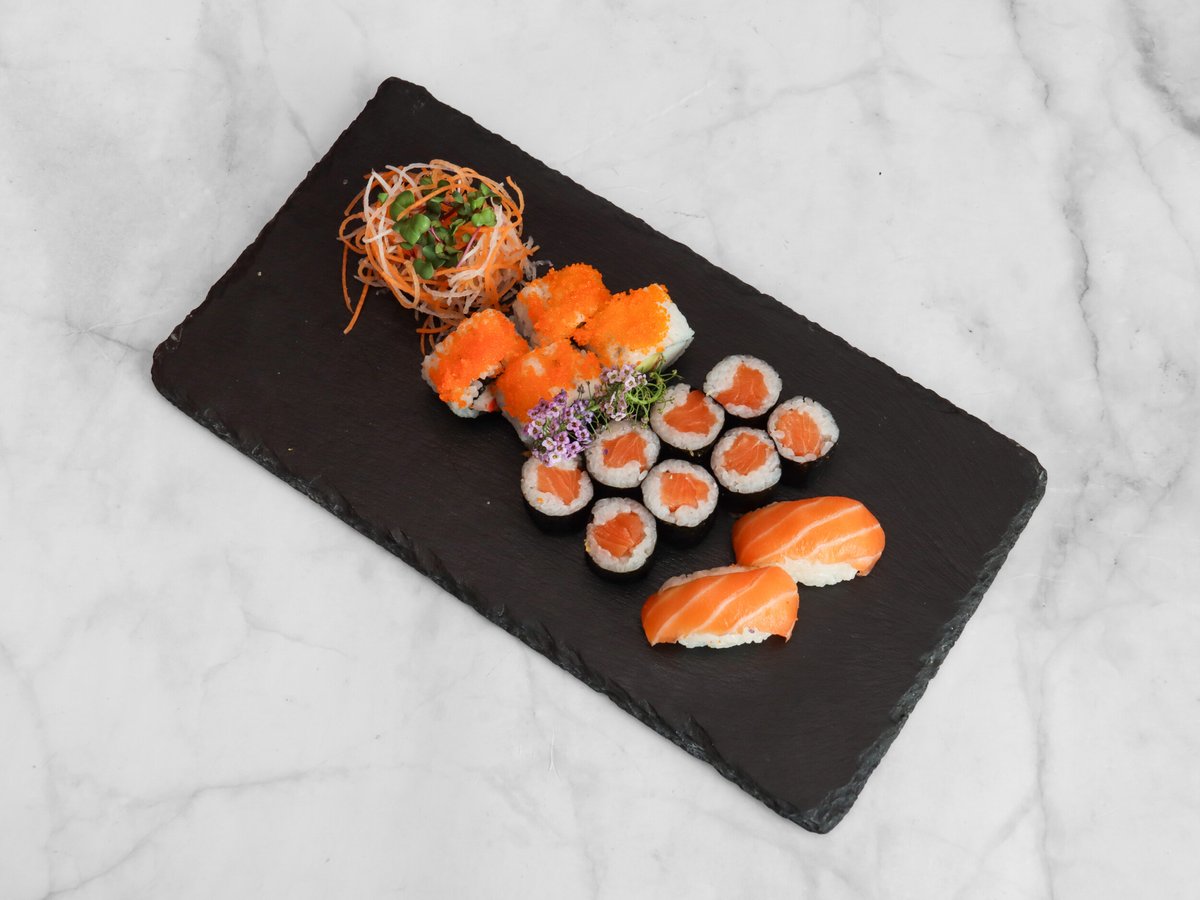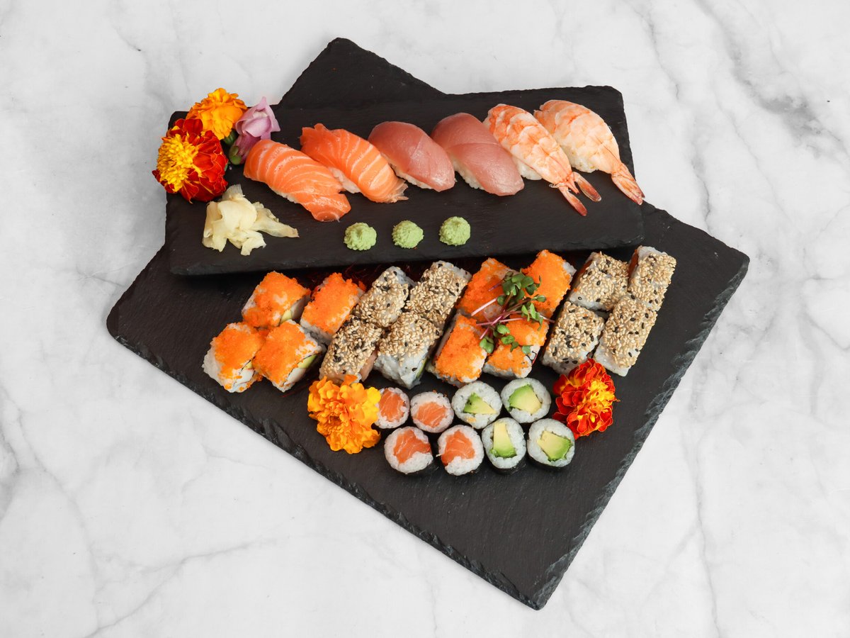 2x Sake Nigiri 2x Chu-Toro Nigiri 2x Ebi Nigiri 4x Avocado Maki 4x Sake Maki 4x Maguro Inside Out 4x Sake Inside Out 4x Alaska Inside Out 4x Ebi Inside Out