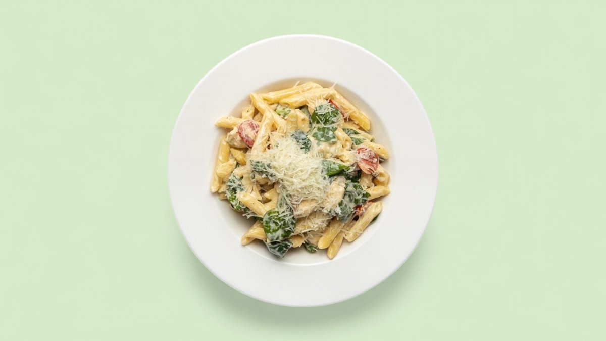 Penne mit Basilikum-Sahnesoße und Knoblauch