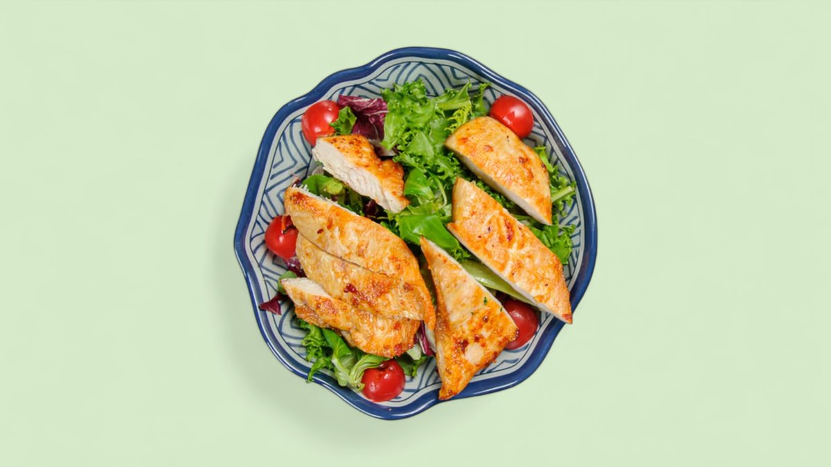 gemischter Salat mit Artischocken und gegrilltem Hähnchenbrustfilet
