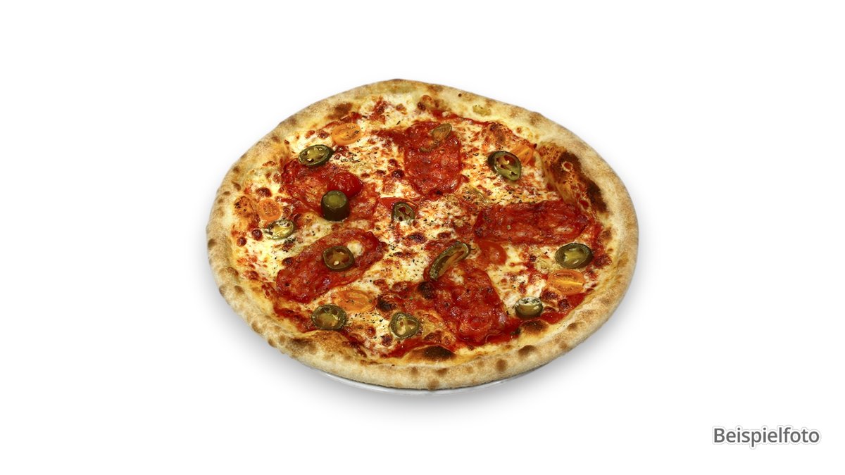 scharf, mit Salami vom Rind, Peperoni und Tomatensoße