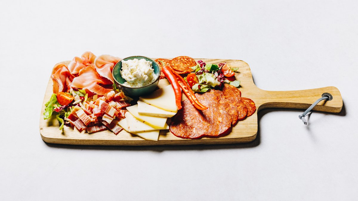 für 1 Person mit Gemüse, Käse, Salami, Schinken und Bruschetta