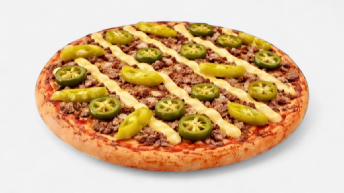mit Rinderhackfleisch, Jalapeños, Mozzarella und milden Peperoni
