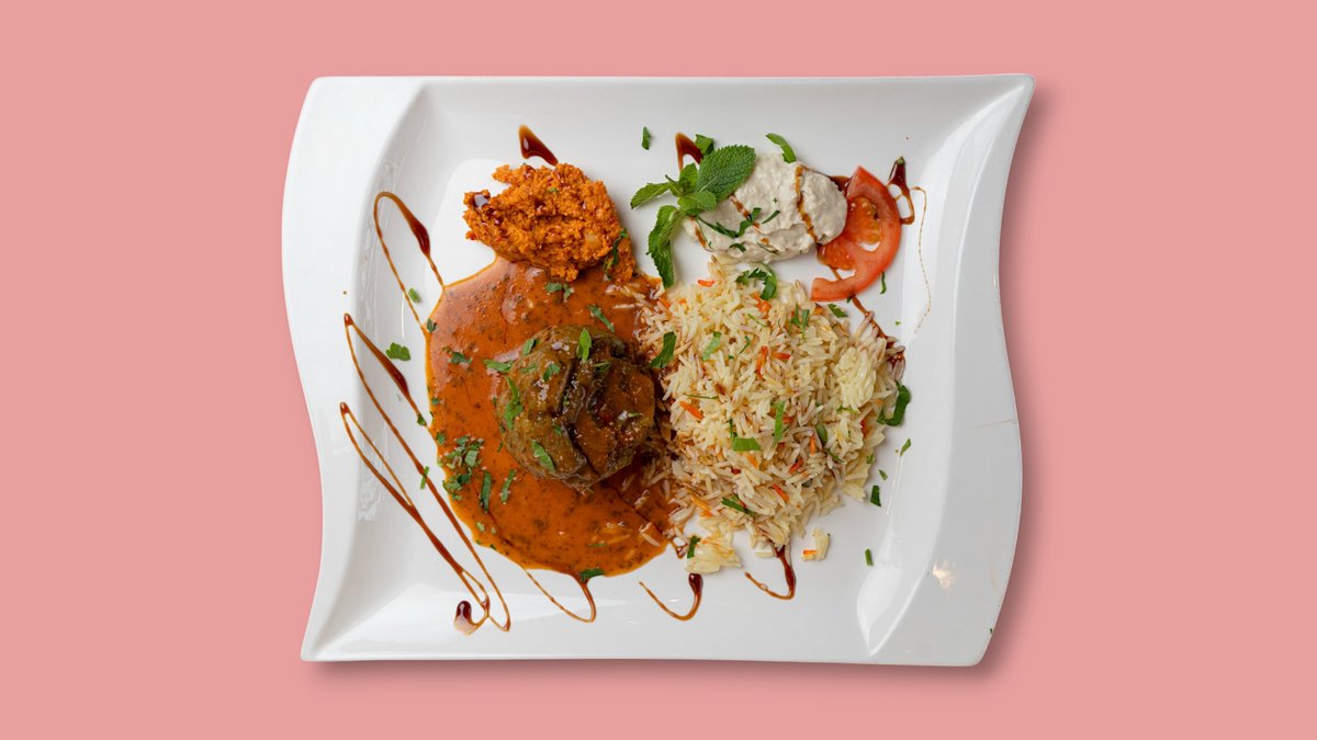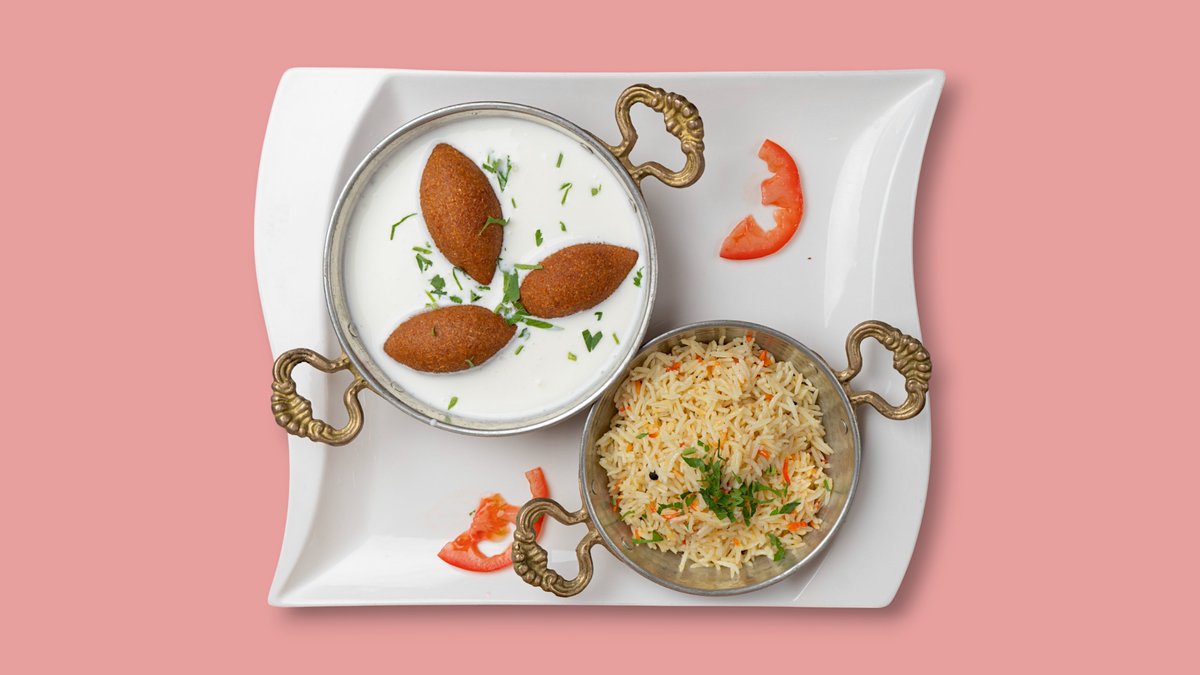 Hackbällchen aus Rind und Lamm auf Joghurtsoße und Mandi-Reis