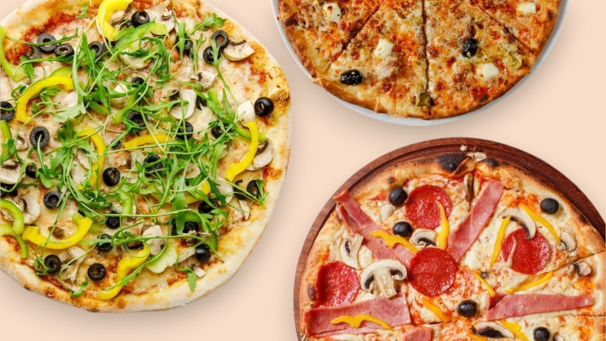 alle Pizzen werden mit Tomatensoße, Gouda und in einer Größe deiner Wahl zubereitet