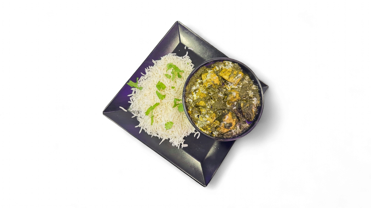 Hausgemachter indischer Frischkäse in cremiger Spinatsauce inkl. Reis