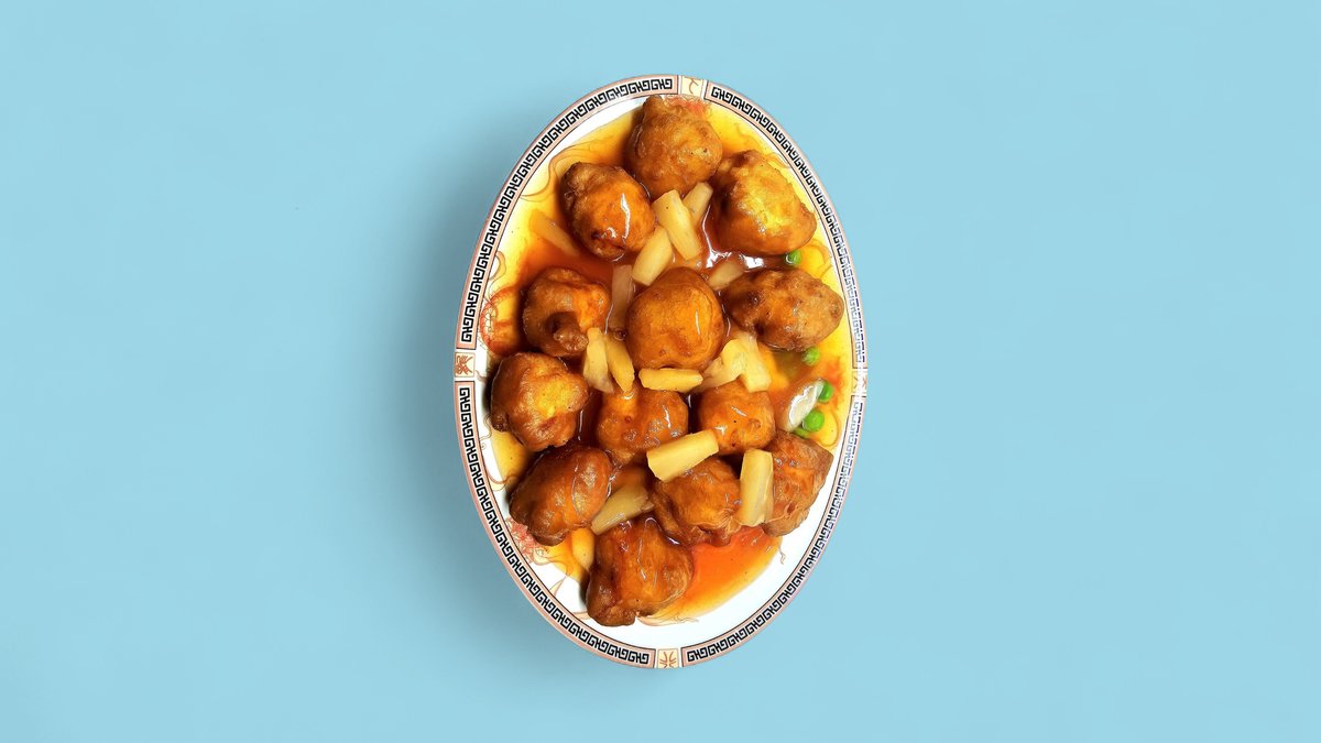 süß-sauer, im Teig mit Ananas und Erbsen