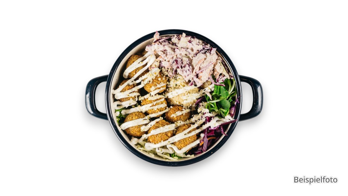 alle Gerichte werden mit Falafel und in einer Größe deiner Wahl zubereitet