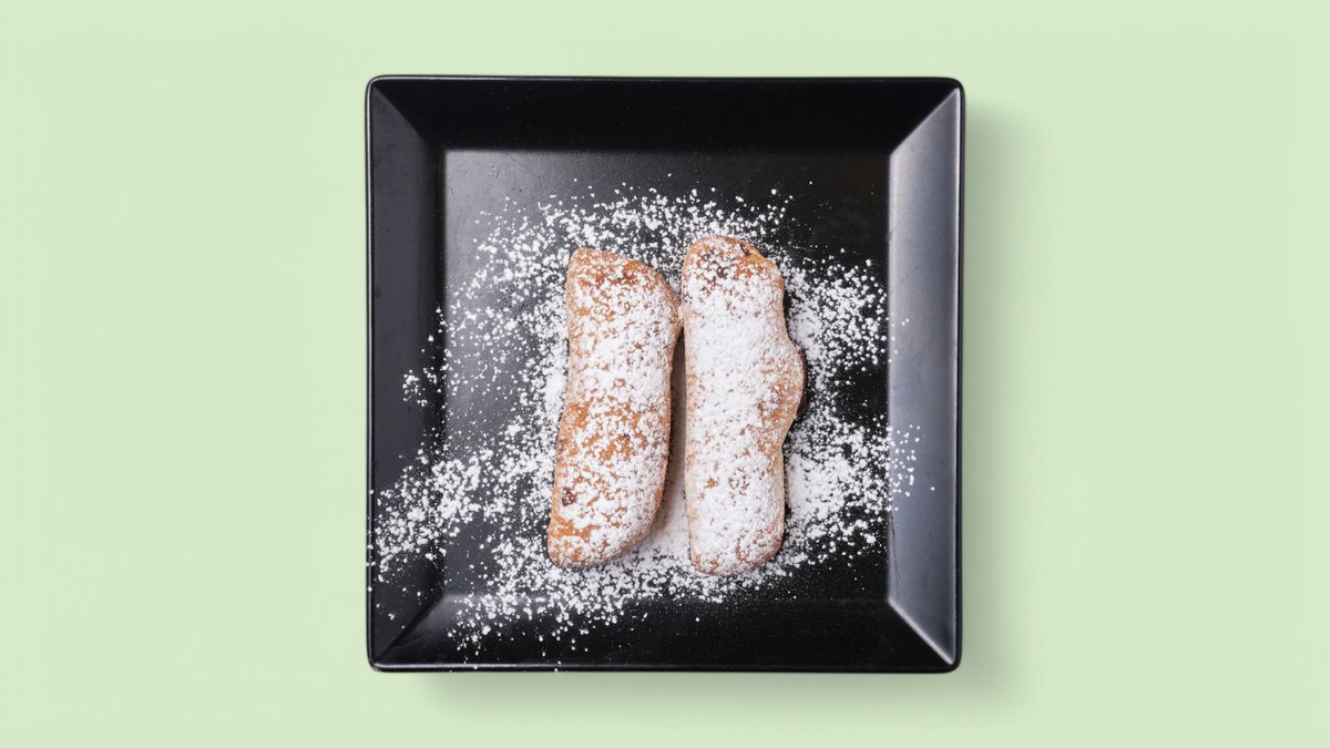2x Teigtaschen, gefüllt mit Nutella und bestäubt mit Puderzucker