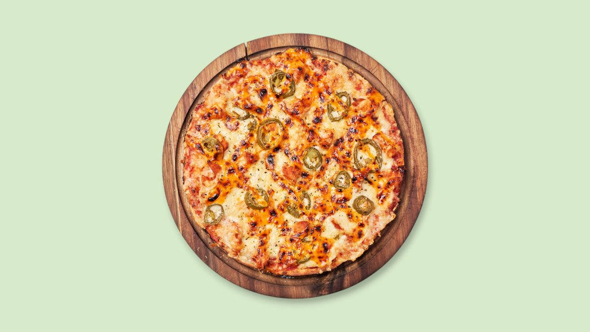 mit Mais, Paprika, roten Zwiebeln, Hirtenkäse, Champignons, Jalapeños und Chili-Käsesoße