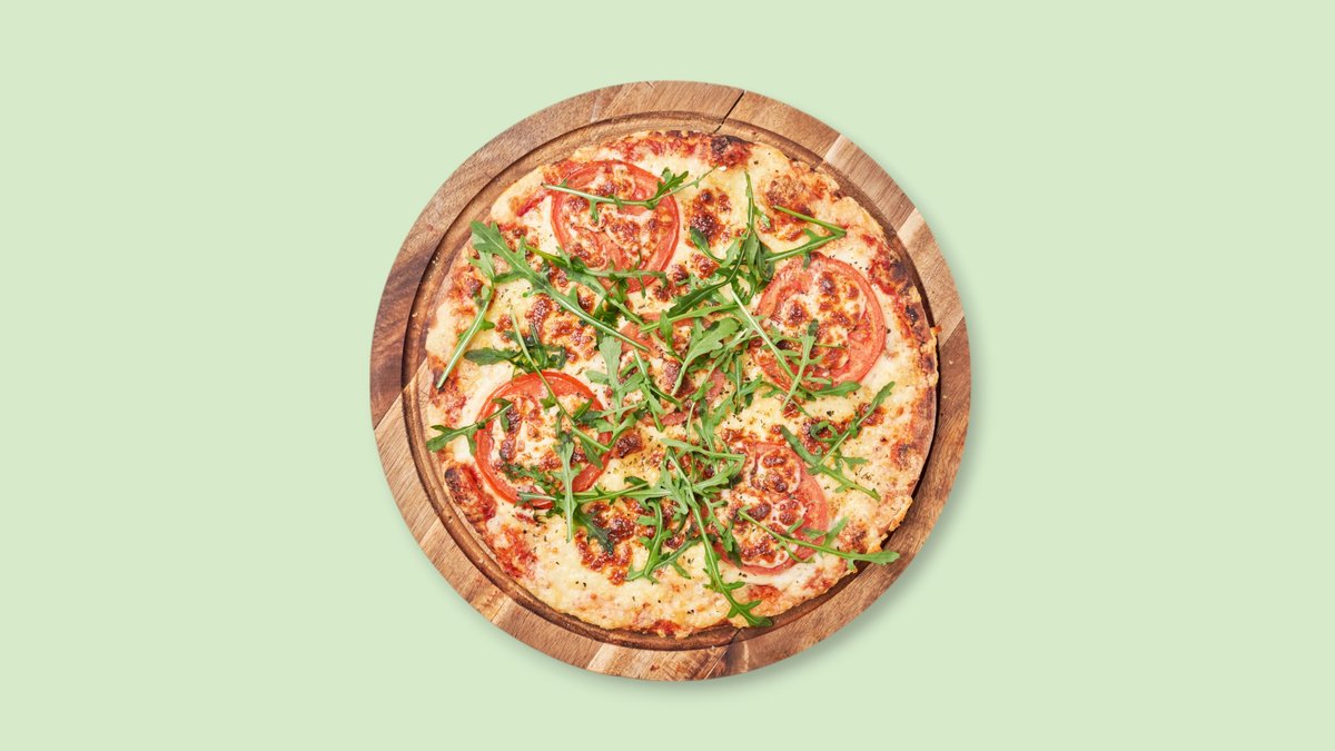 mit Tomaten, veganem Mozzarella, Rucola und Eisbergsalat