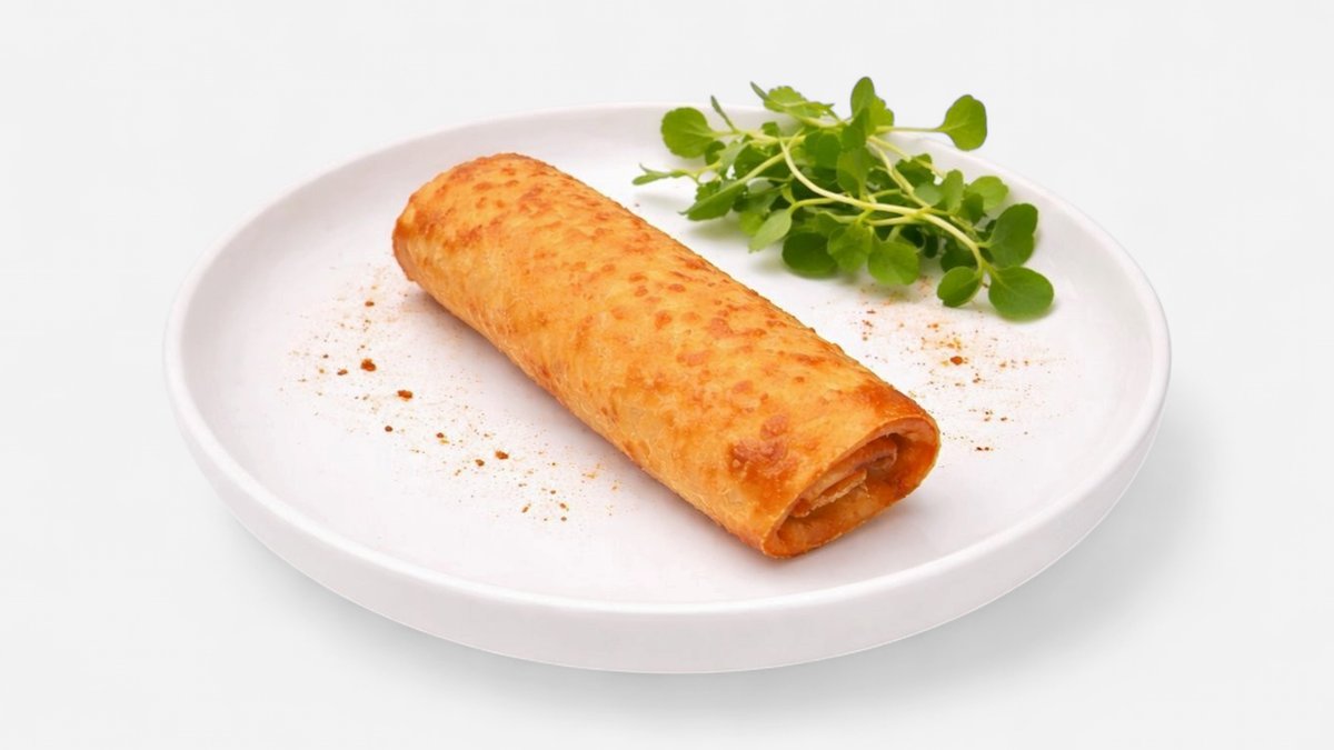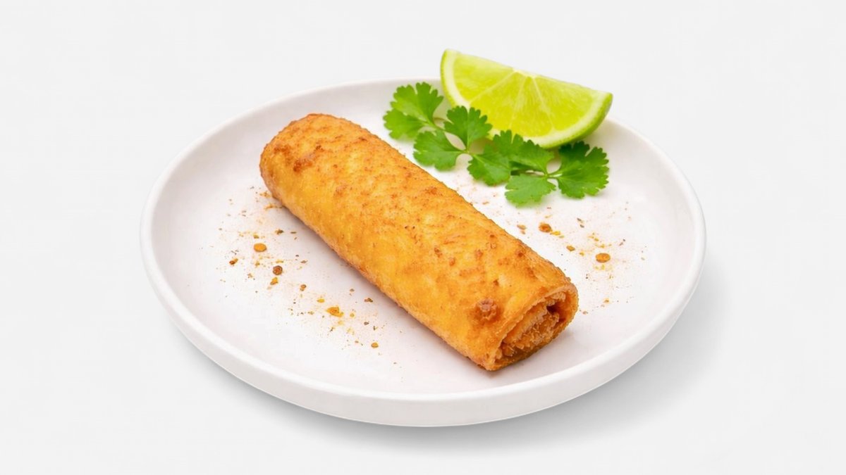 knusprig frittierte Teigrolle, gefüllt mit gewürztem Hähnchenfleisch