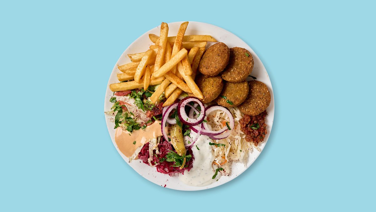 mit Pommes frites und einer Fleischsorte deiner Wahl