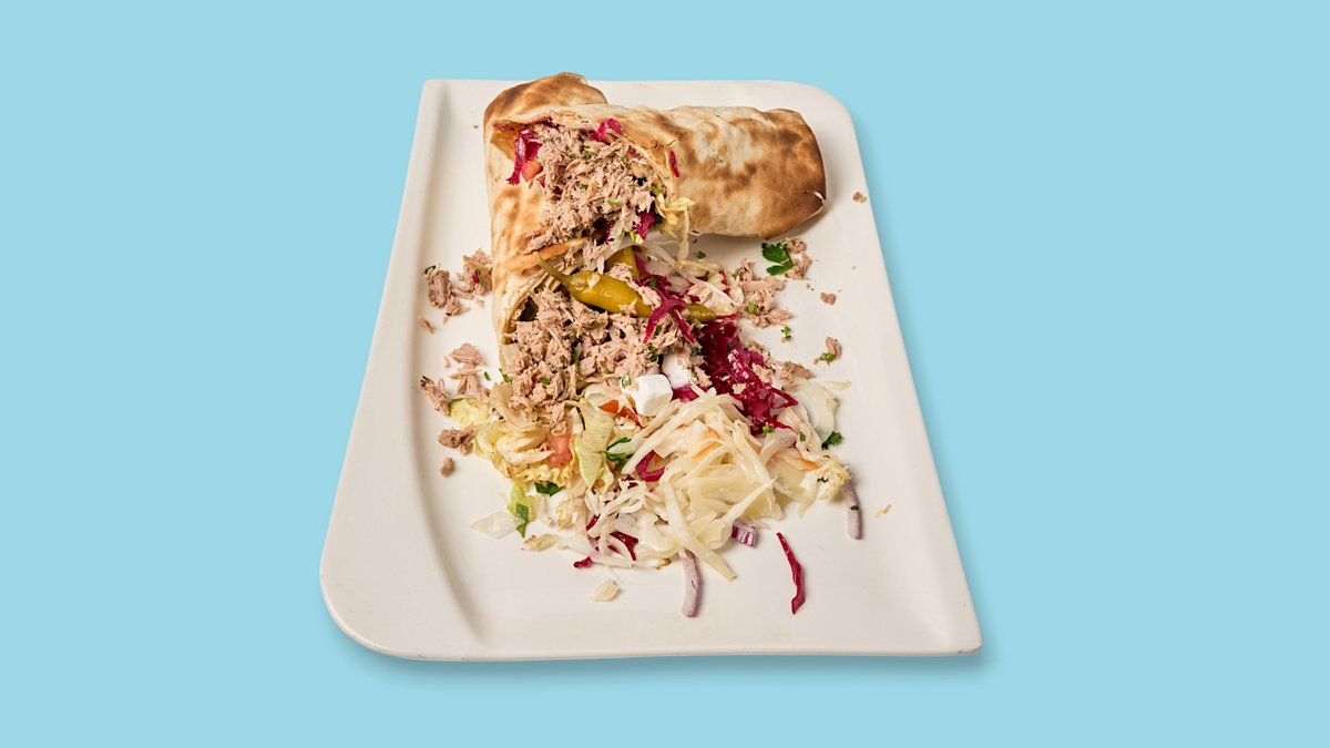 mit einer Fleischsorte deiner Wahl, Salat und einer Soße deiner Wahl