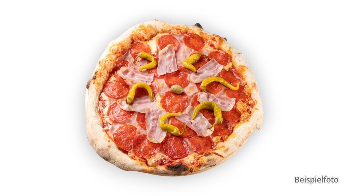 gefüllt mit Schinken vom Hähnchenflügel, Pilzen, Paprika und Salami vom Rind und Hähnchenflügel