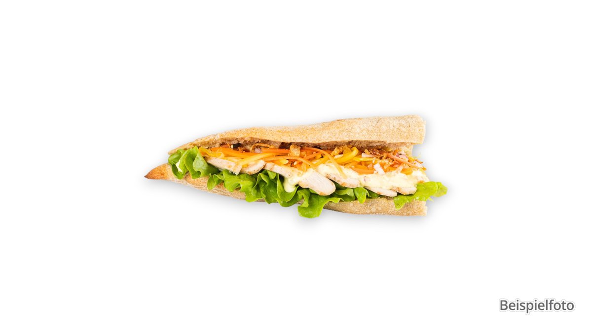 mit marinierten Hähnchenbruststreifen, Paprika, Champignons, Zwiebeln und Mayonnaise