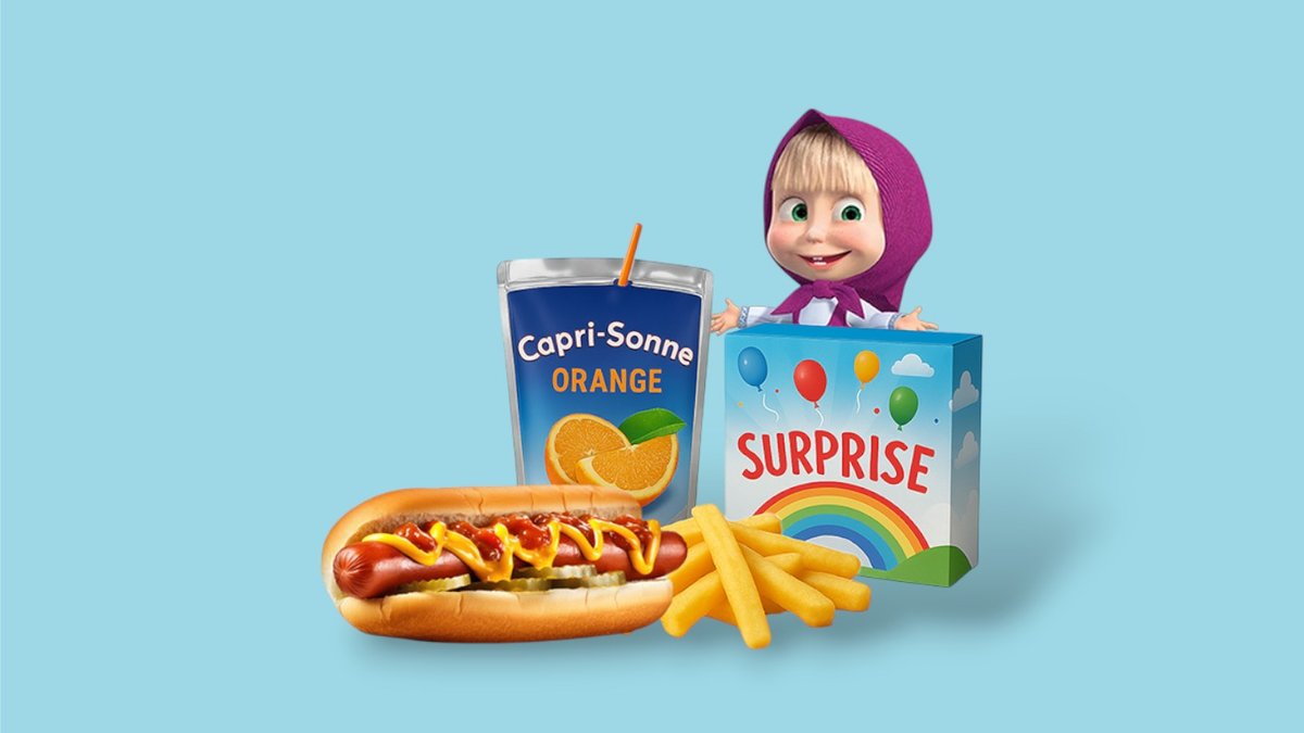 1x Hotdog 1x Pommes frites 1x Überraschung 1x Capri-Sun