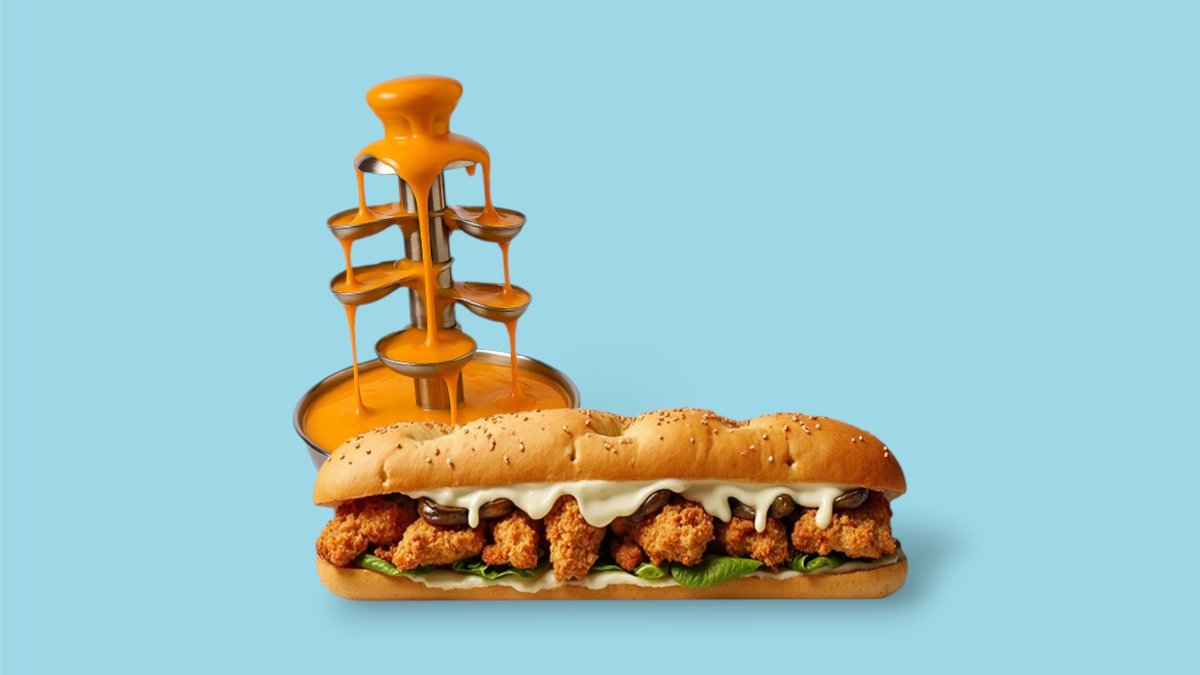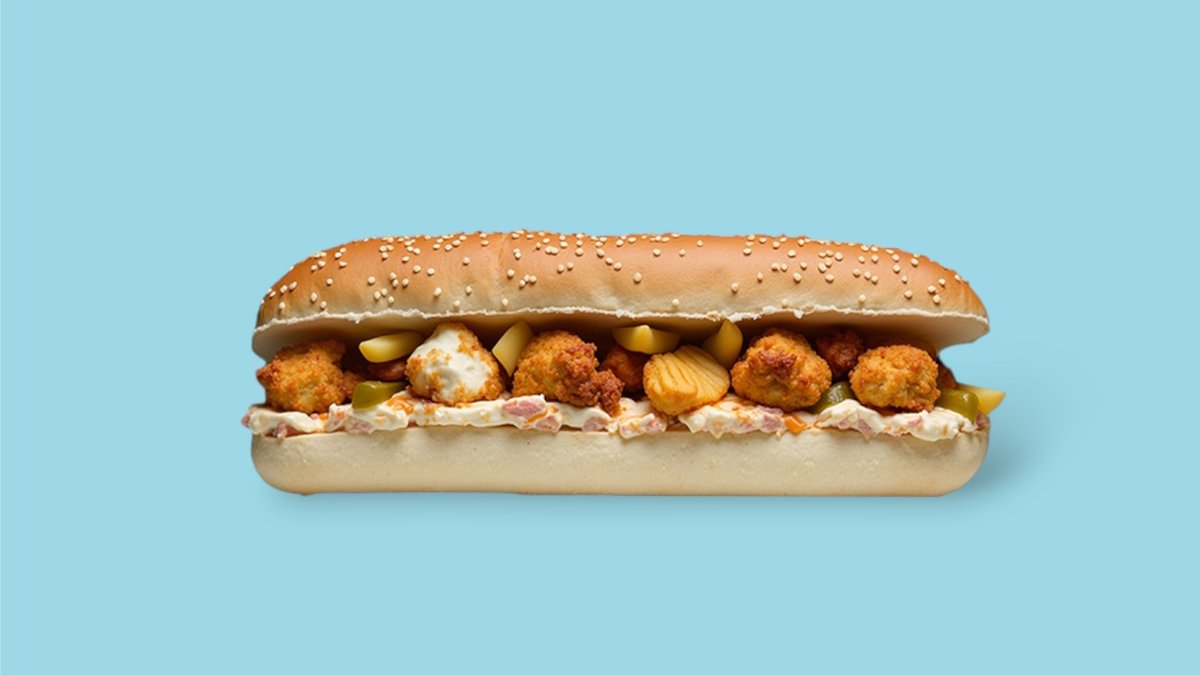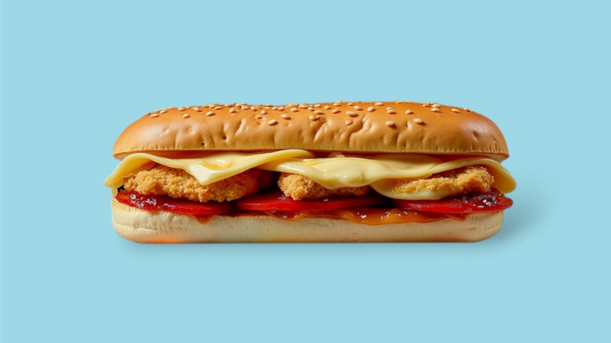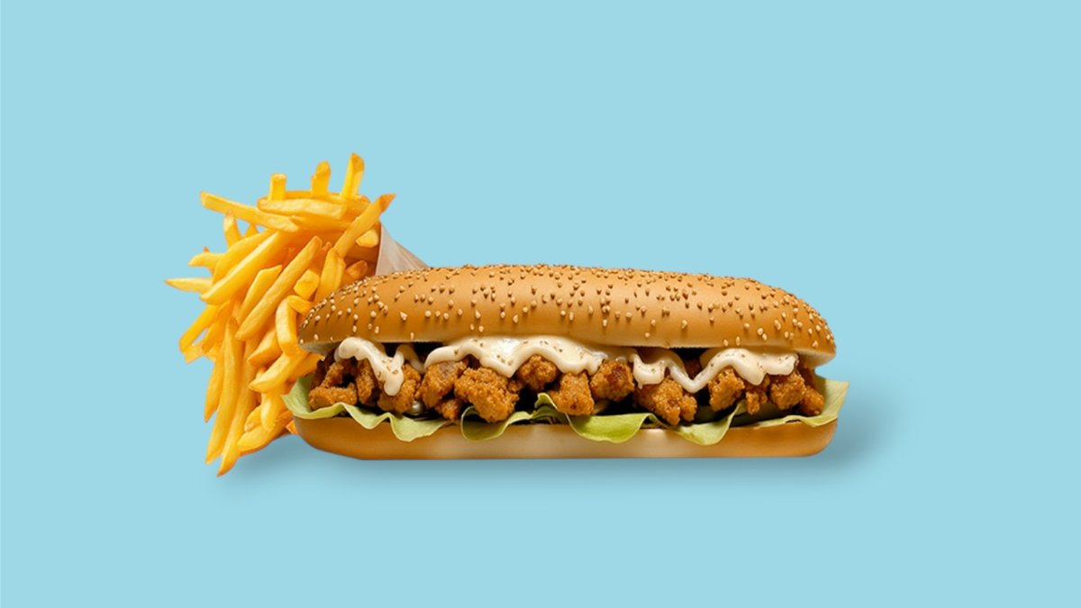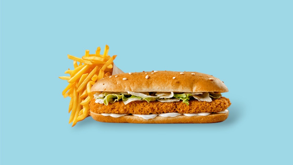 mit frittierten knusprigen Chicken Tenders, scharfer Zinger-Soße, Eisbergsalat, Cheddar und Mayonnaise