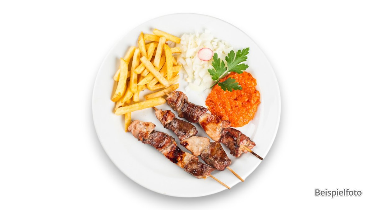 LammfleischspieĂź auf Buche gegrillt mit frischem Salat