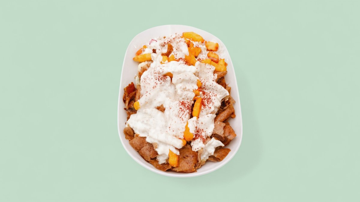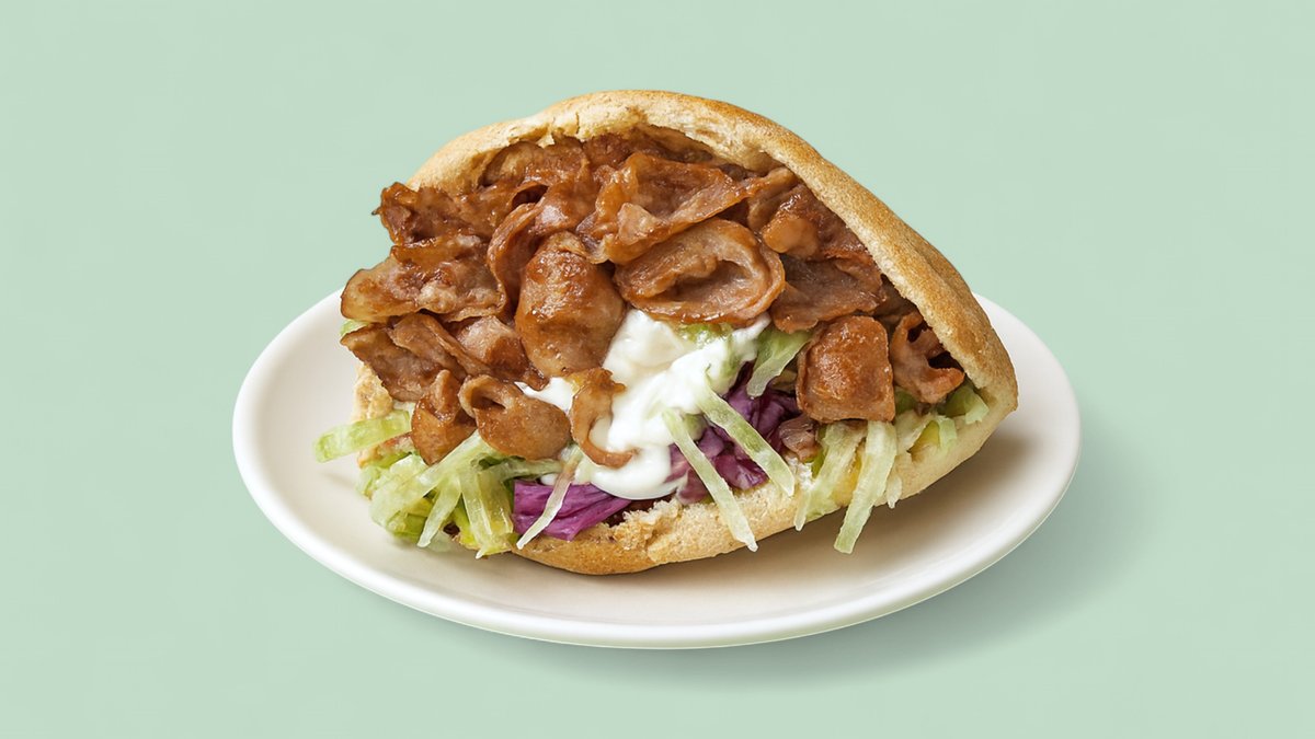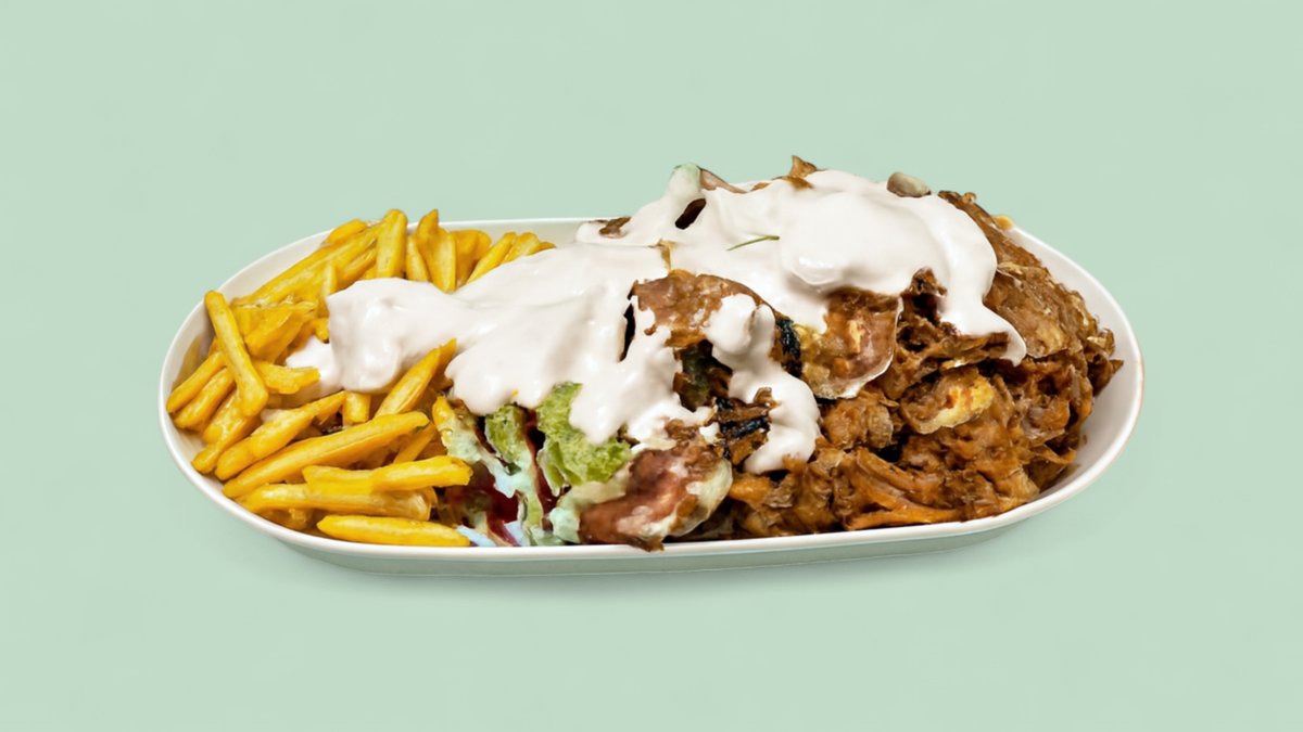 mit Salat, einer Fleischsorte und einer Soße deiner Wahl