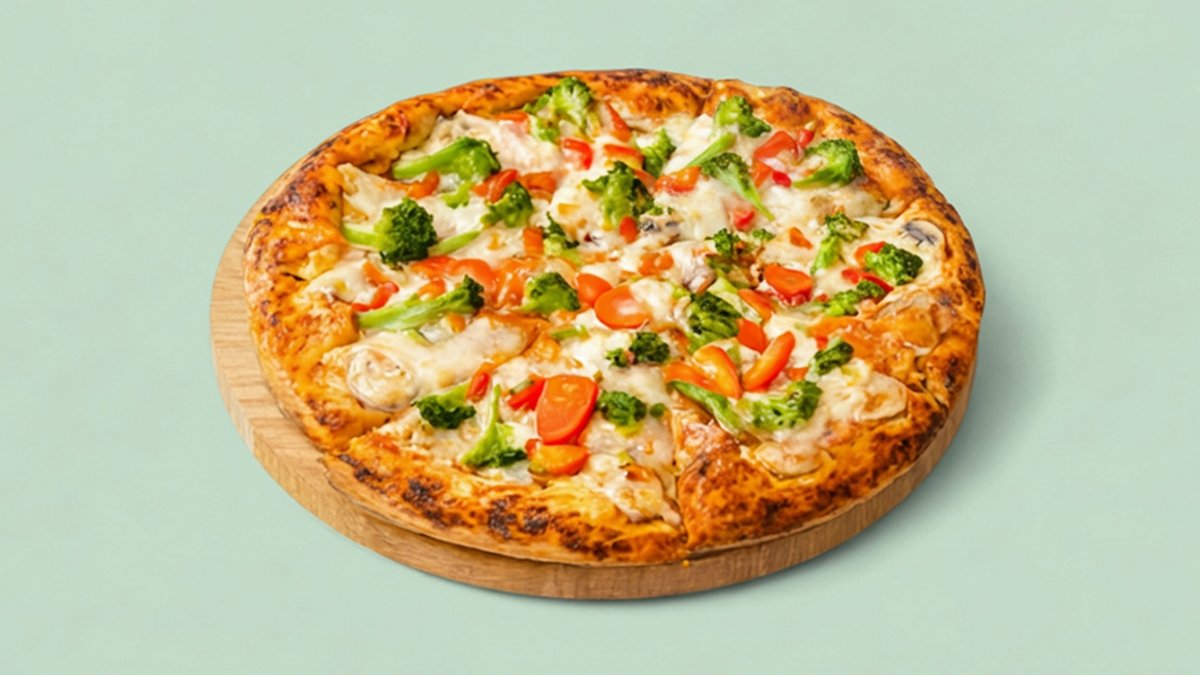 mit Tomatensoße, Käse, Hähnchen, Brokkoli und Ananas