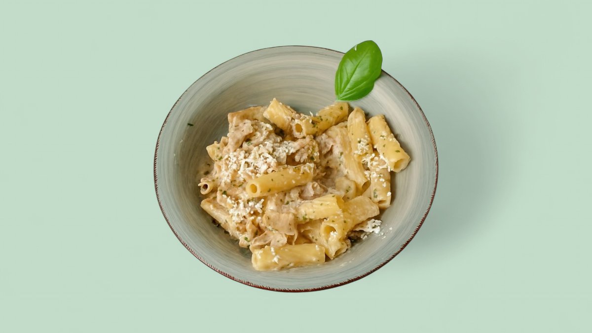 mit gebratenem Hähnchenfleisch, Spinat und Knoblauchsoße