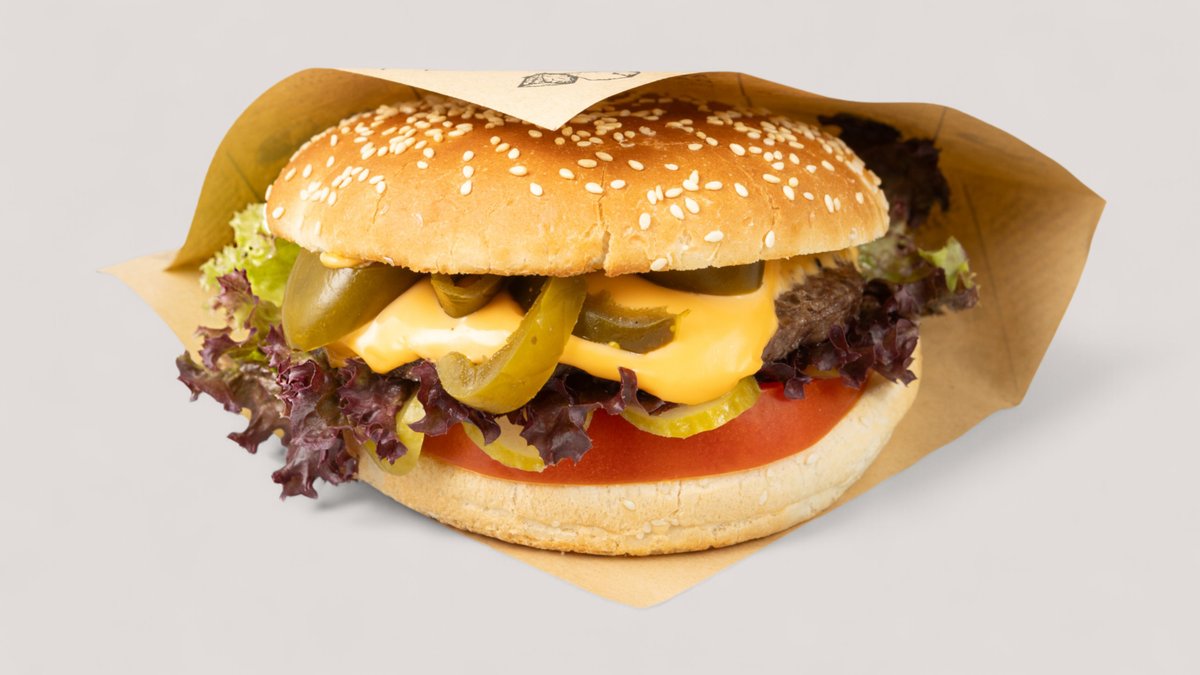 mit 100 g Kalbfleischpatty, Cheddar und Jalapeños