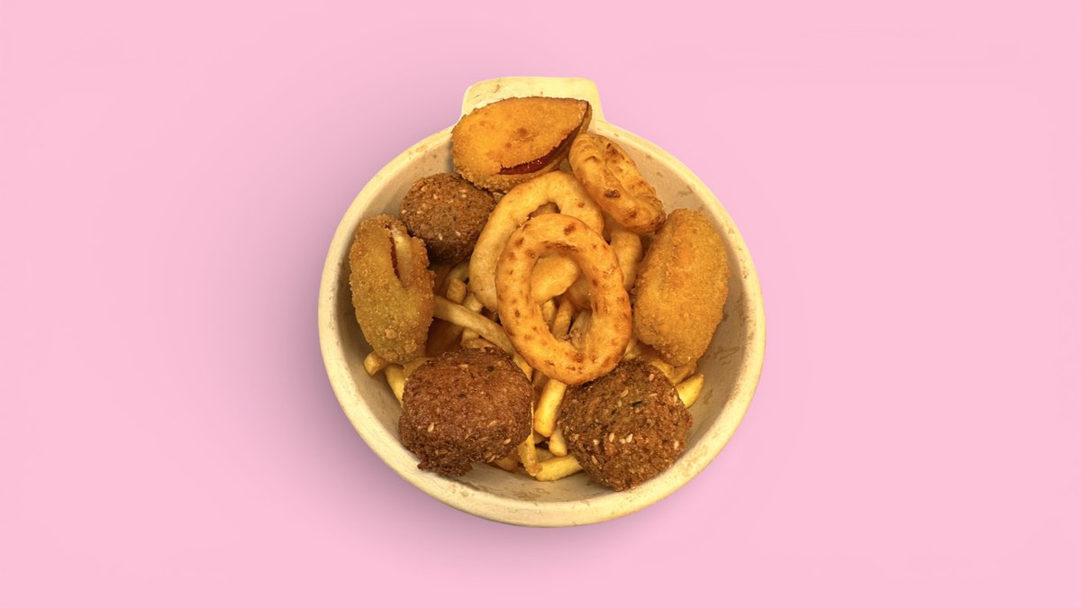 3 Falafel, 3 Chilli Cheese Nuggets, 5 Unionring , Pommes