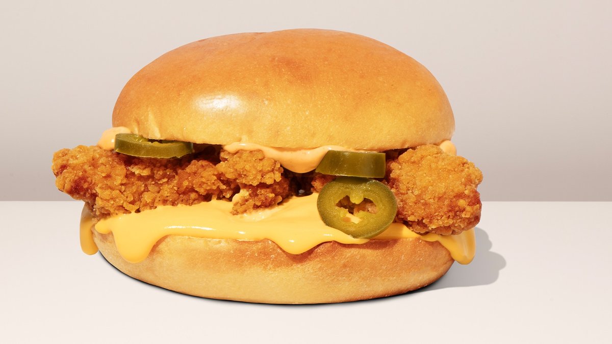 Hot Jalapeños, Cheese Sauce, 2 Loco Filets, Harissa Mayo in einem Soft Burger Bun