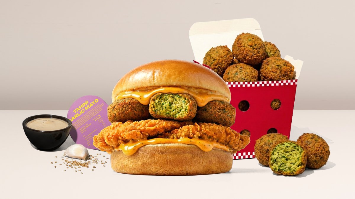 Halal | Nur während Ramadan! Der Falafel Chicken Burger, dazu 7x Crunchy Falafel und unser Tahini Garlic Dip