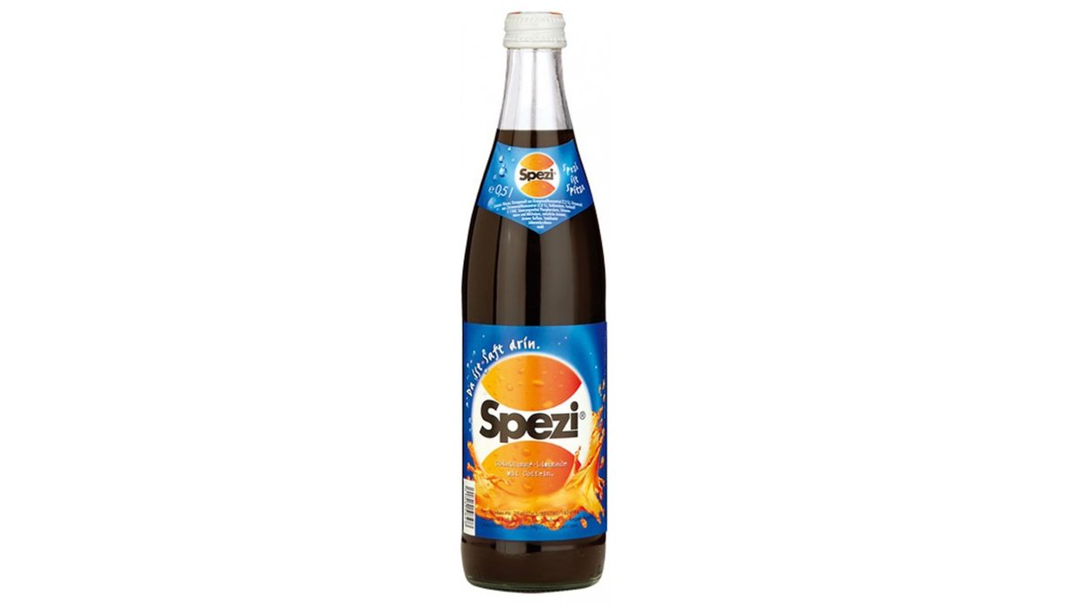 Koffeinhaltiges Erfrischungsgetränk mit Cola- und Orangenaroma, Zucker, mit Kohlensäure