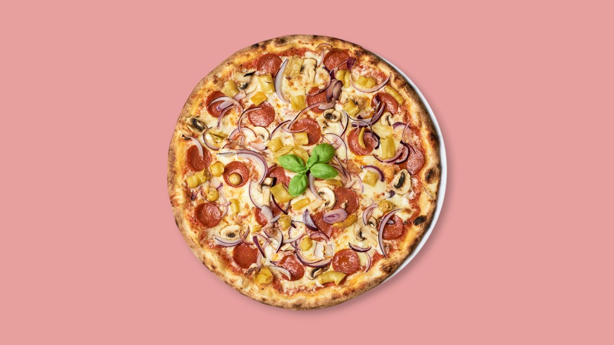 mit Peperonisalami, Schinken, Artischocken und Paprika