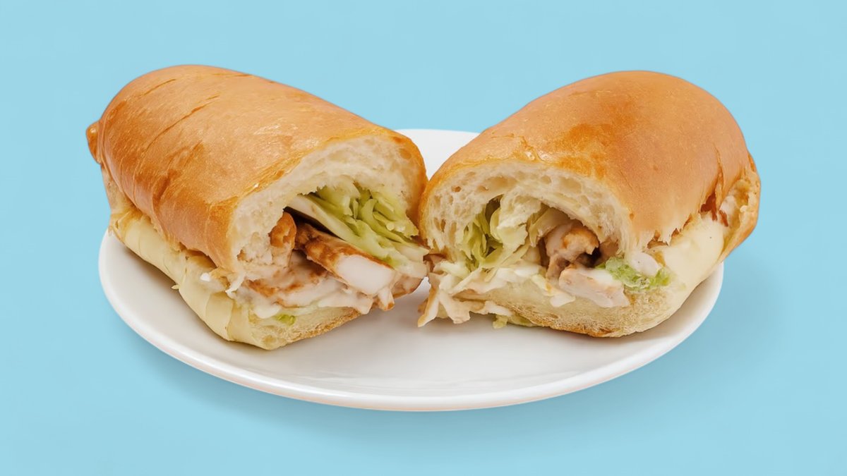 gegrilltes, speziell gewürztes Hähnchenbrustfilet im hauseigenen Soft-Baguette-Brot