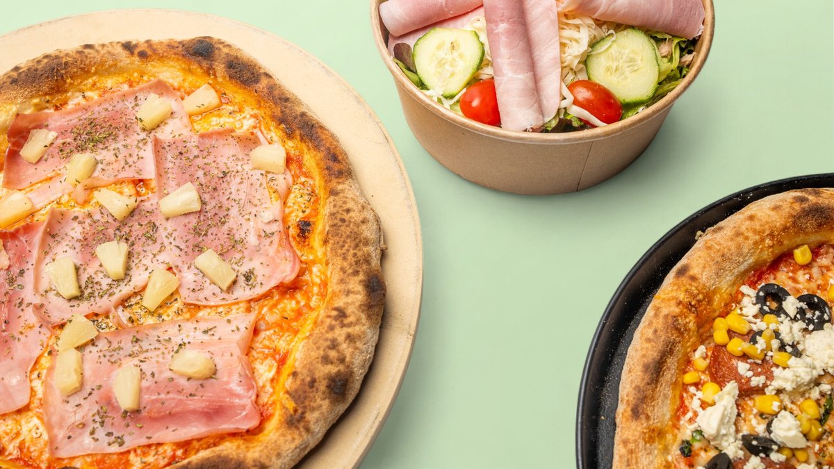 alle Pizzen werden mit hausgemachter Tomatensoße und in einer Größe deiner Wahl zubereitet