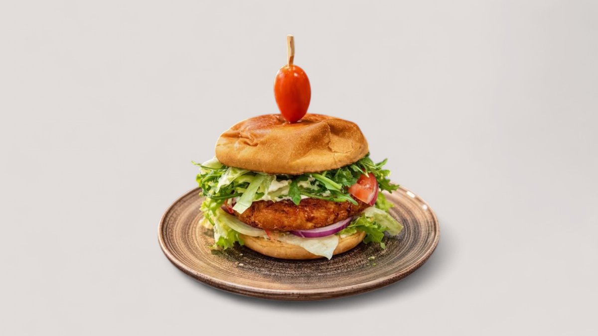 Knusprig paniertes Hähnchenfilet mit frischem Salat, Tomate, mildem Sweet Chili sauce, perfekt abgestimmt für alle die es würzig, aber nicht zu scharf mögen