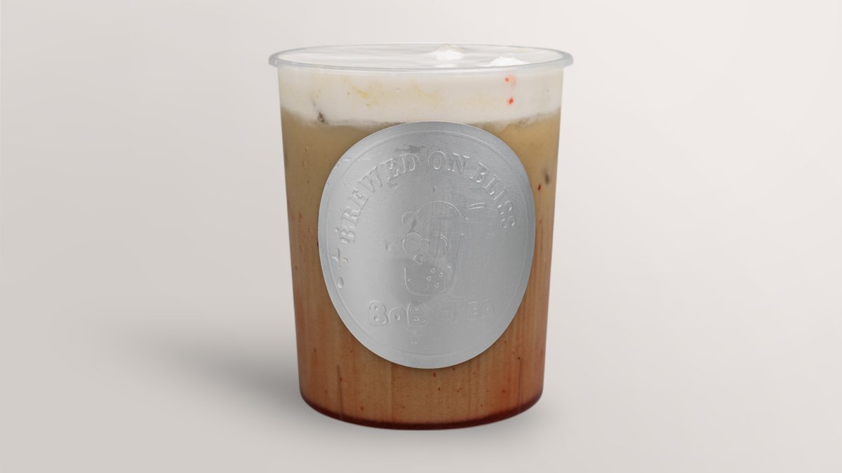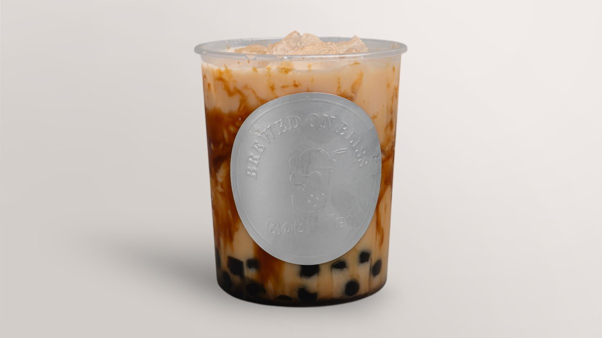 Ein optisch ansprechendes, cremiges Getränk mit Kokosgeschmack und zähen Tapiokaperlen.
