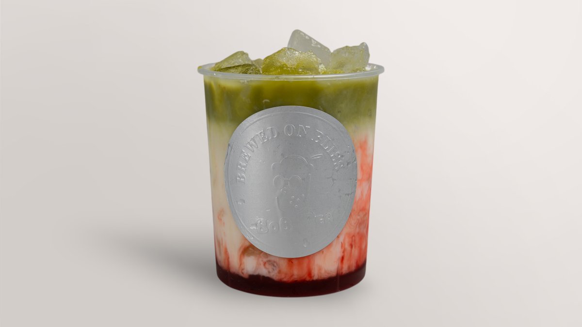 Ein vielschichtiges Getränk, das die Süße der Erdbeere, die Herbe des Matcha und die Cremigkeit der Kokosmilch vereint.