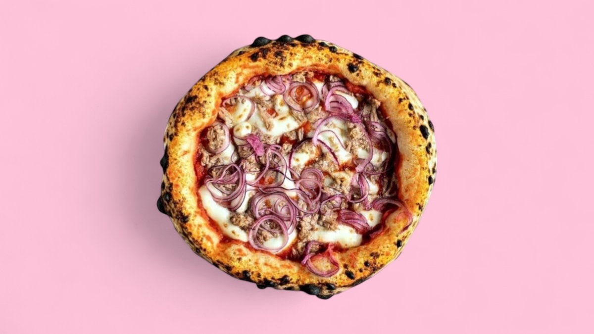 Homemade Marinara, Mozzarella, Thunfisch, roten Zwiebeln - mit Kräuter der Toskana, geriebenem Parmesan und Olivenöl verfeinert Empfehlung: Die Auslieferung der Pizza erfolgt über die Bestellplattform und deren Fahrer. Falls die Pizza nicht mehr warm bzw. durchgeweicht ist, empfiehlt es sich, diese bei 250 °C für 4 Minuten im Ofen zu erwärmen.
