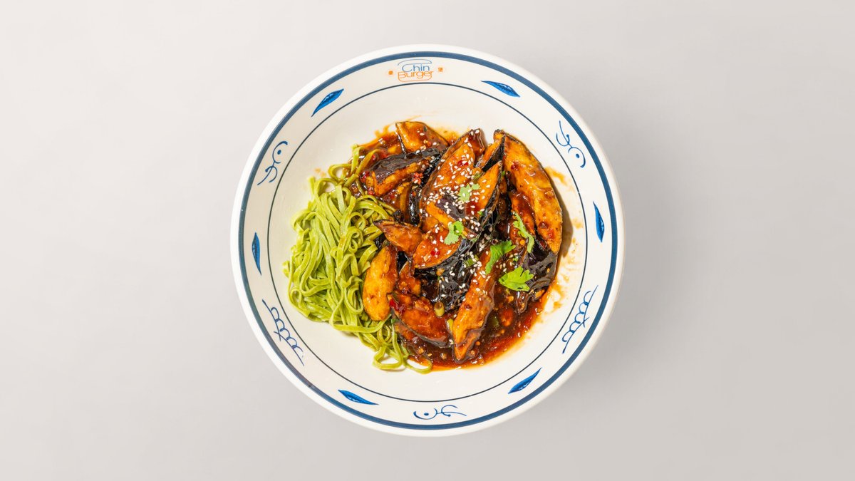 B6. Hausgemachte Spinatnudeln mit Yu-Xiang-Aubergine