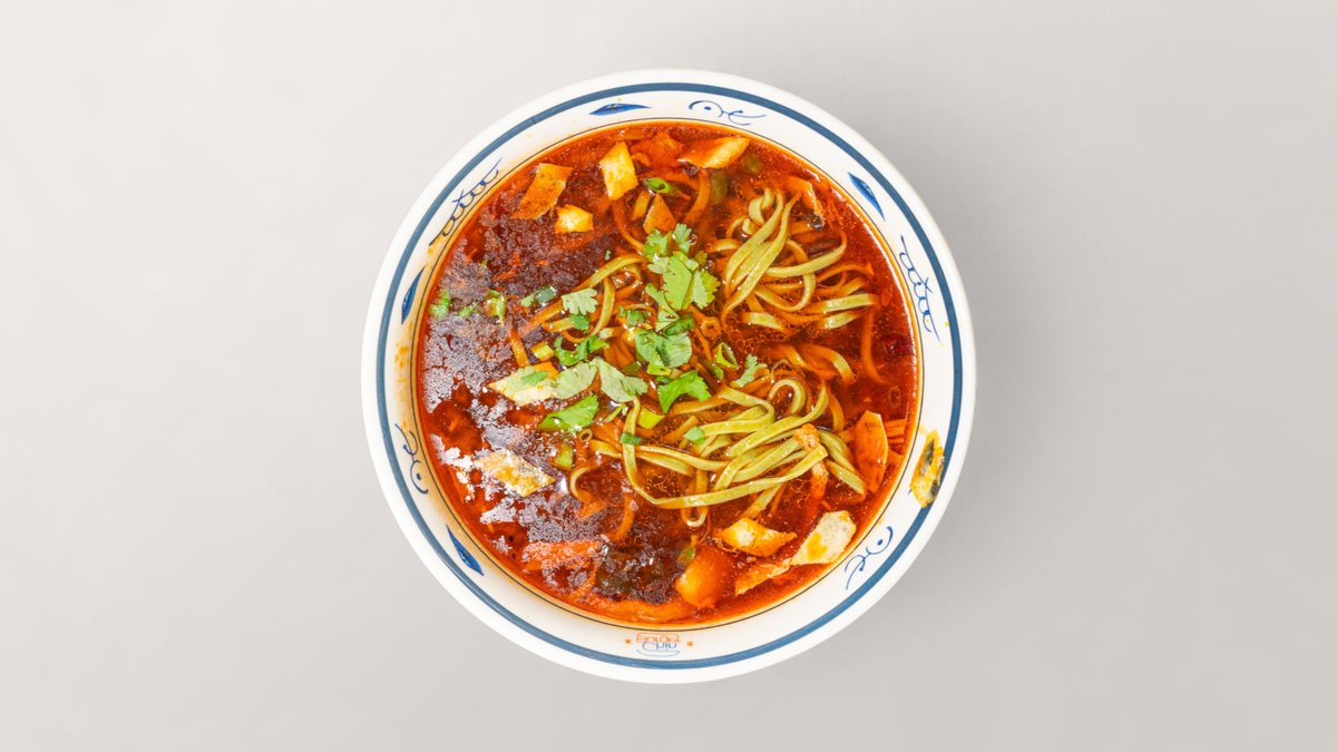 Biang Biang Nudeln in kräftiger Brühe mit Lammfleisch, Gemüse, Mu-Err-Pilzen und Tofu