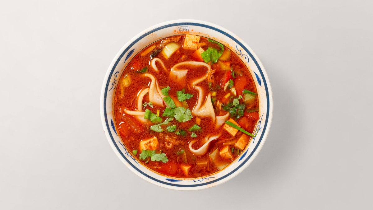 Biang Biang Nudeln mit frischem Gemüse, Mu-Err-Pilzen und Tofu in reichhaltiger Tomatenbrühe