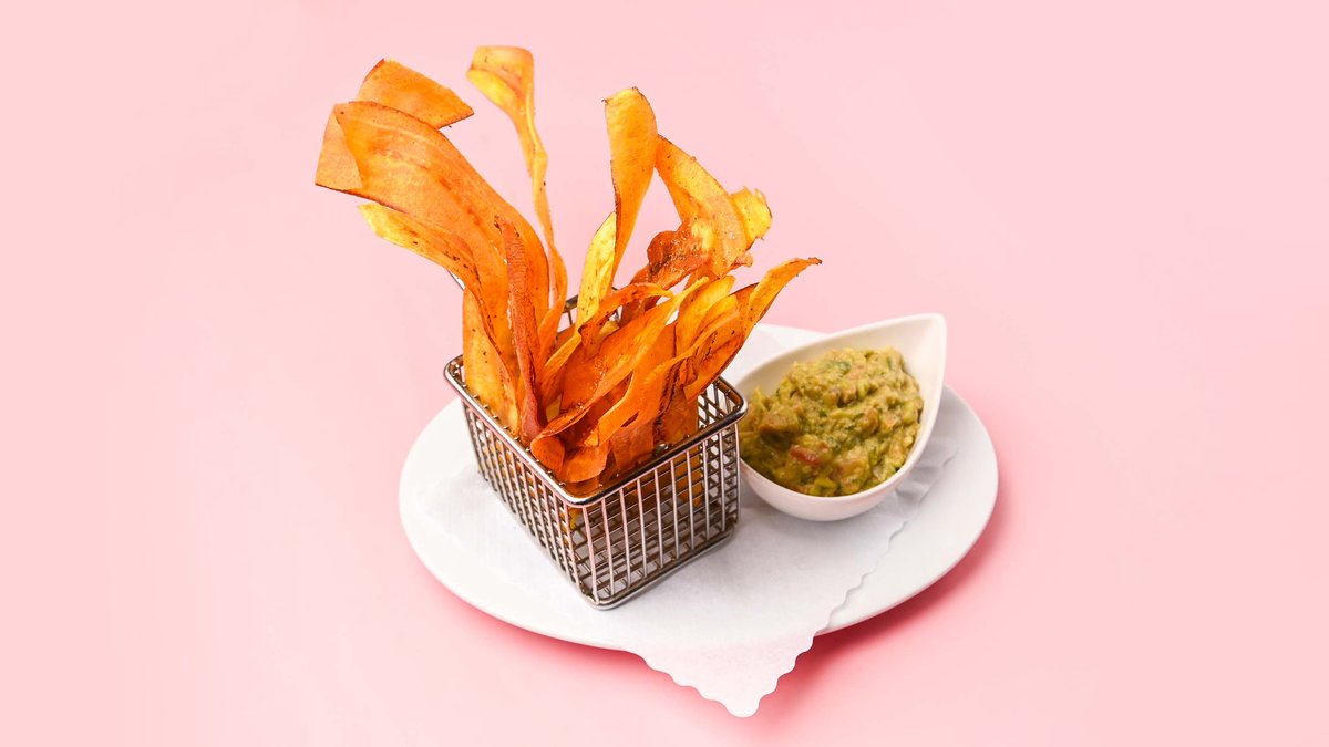 Kochbananen Chips mit Avocado-Tomaten-Dip