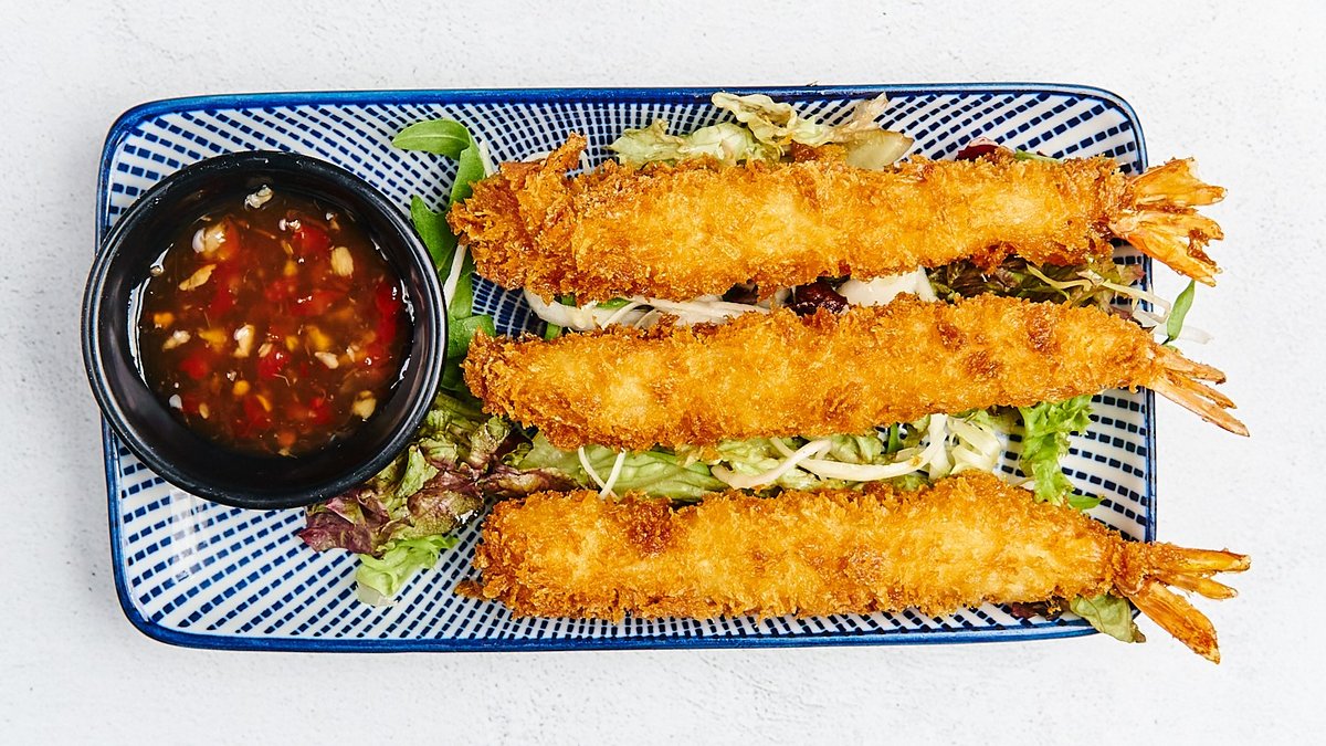 3 Stück knusprig gebratene Garnelen