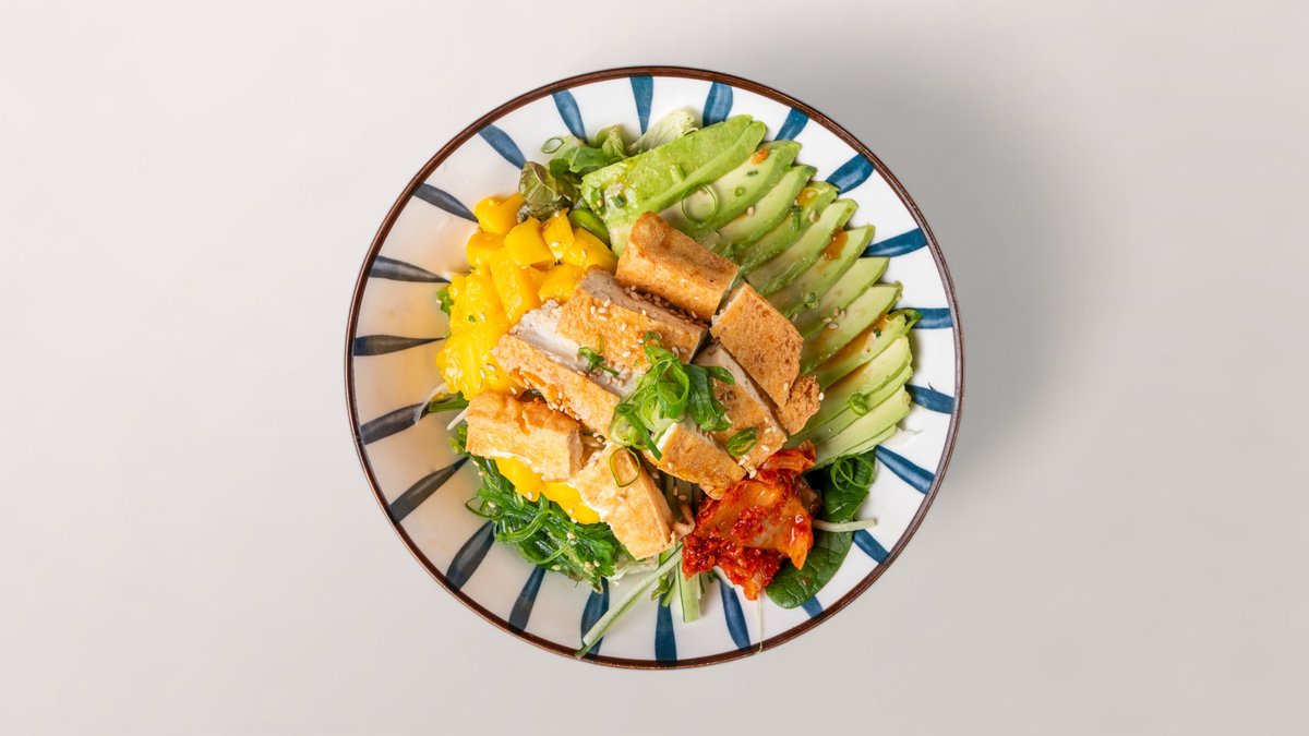 alle Bowls werden mit Sushi-Reis, Weißkohl, Sojasprossen, Avocado, Mango, Gurken, Edamame, gemischtem Salat, Seetangsalat, Spinat, Frühlingszwiebeln, Mais, Sesam und einer Soße deiner Wahl zubereitet