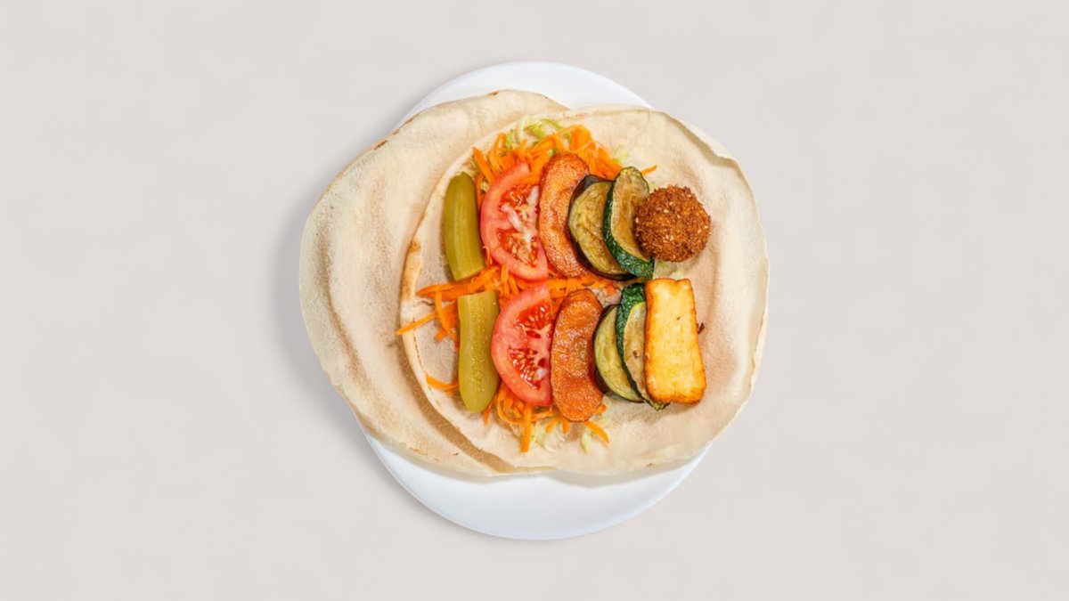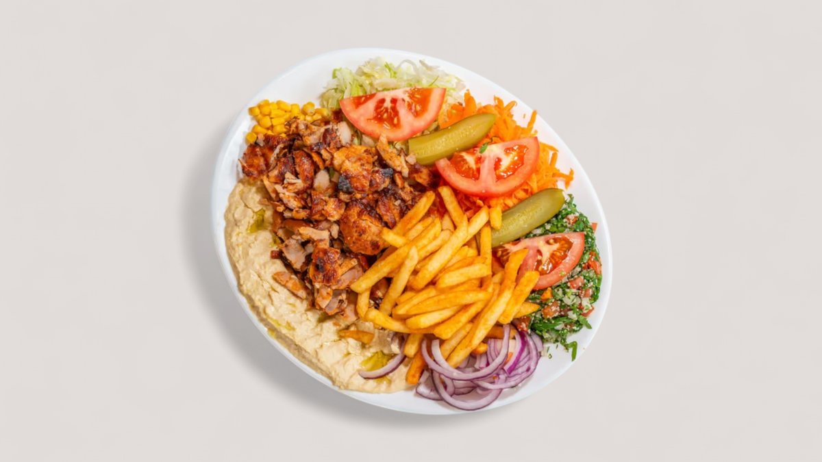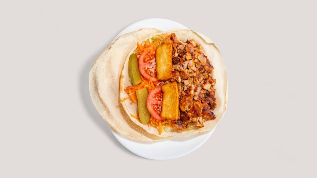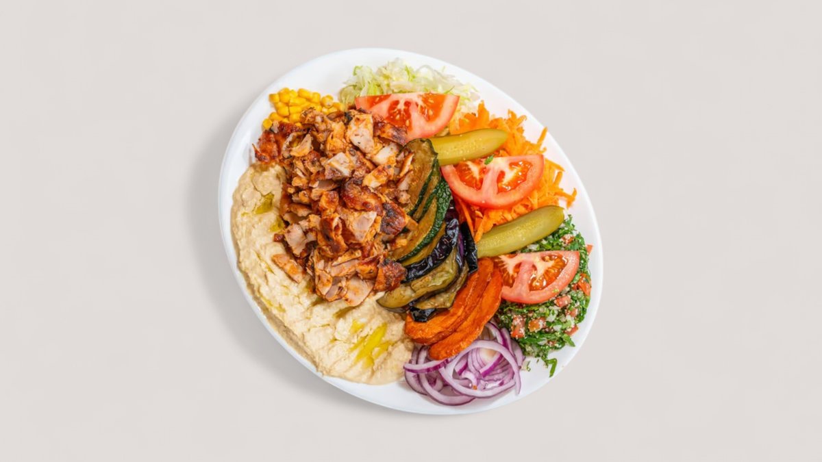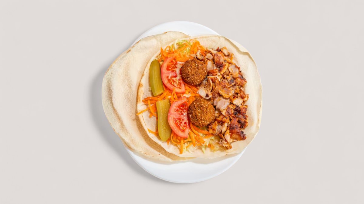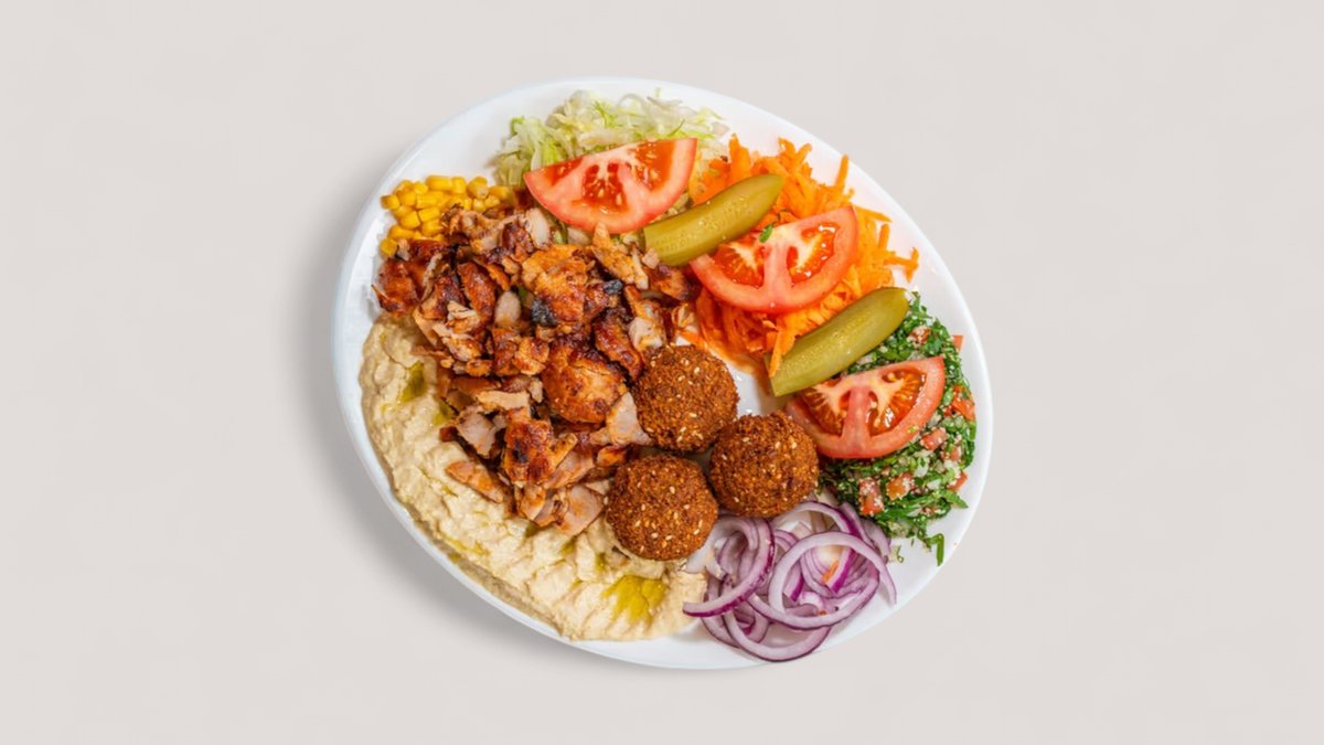 mit Schawarma vom Hähnchen und Falafel