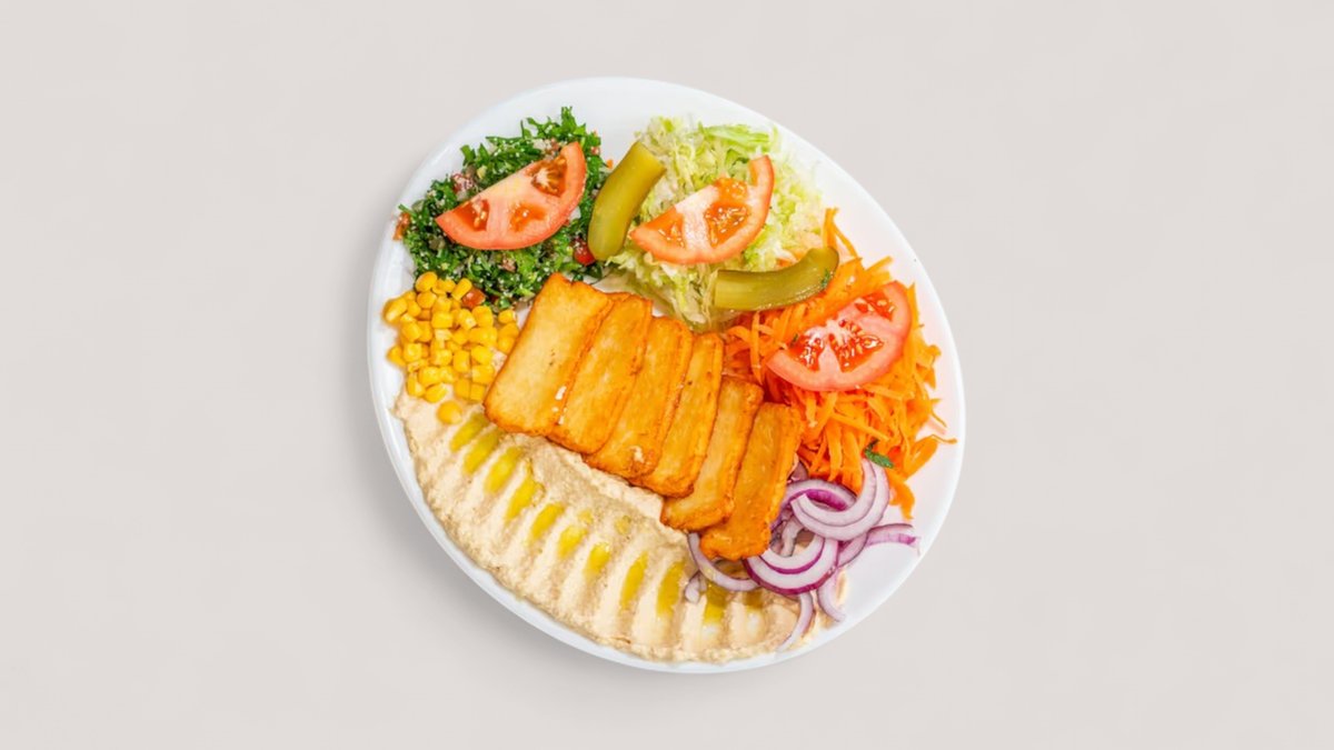 mit Halloumi und Falafel