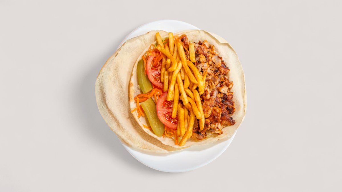 mit Schawarma vom Hähnchen und Pommes frites