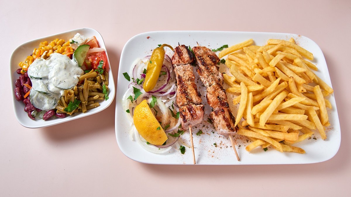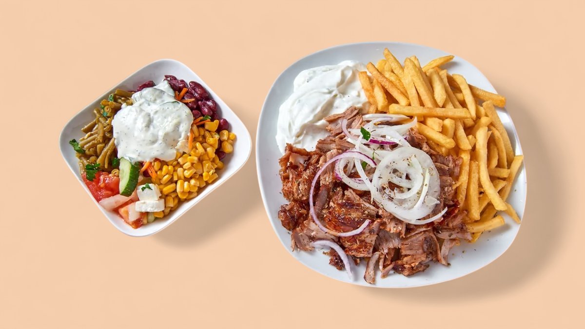 Gyros mit Pommes frites, Salat und Tsatsiki