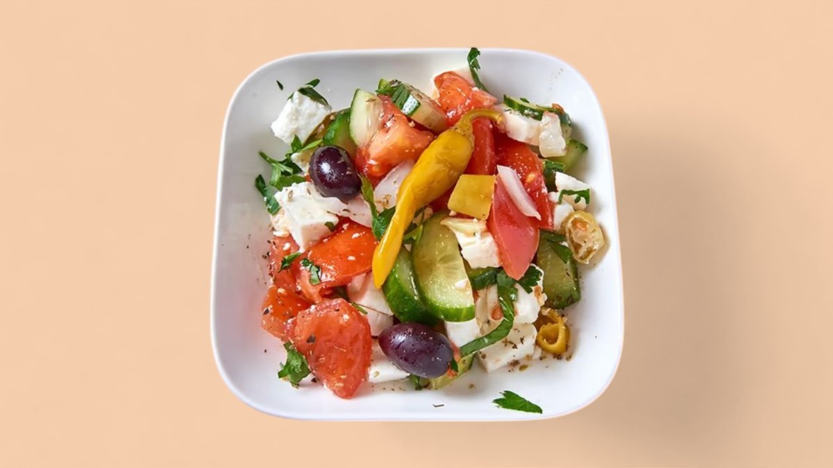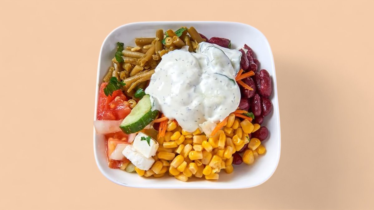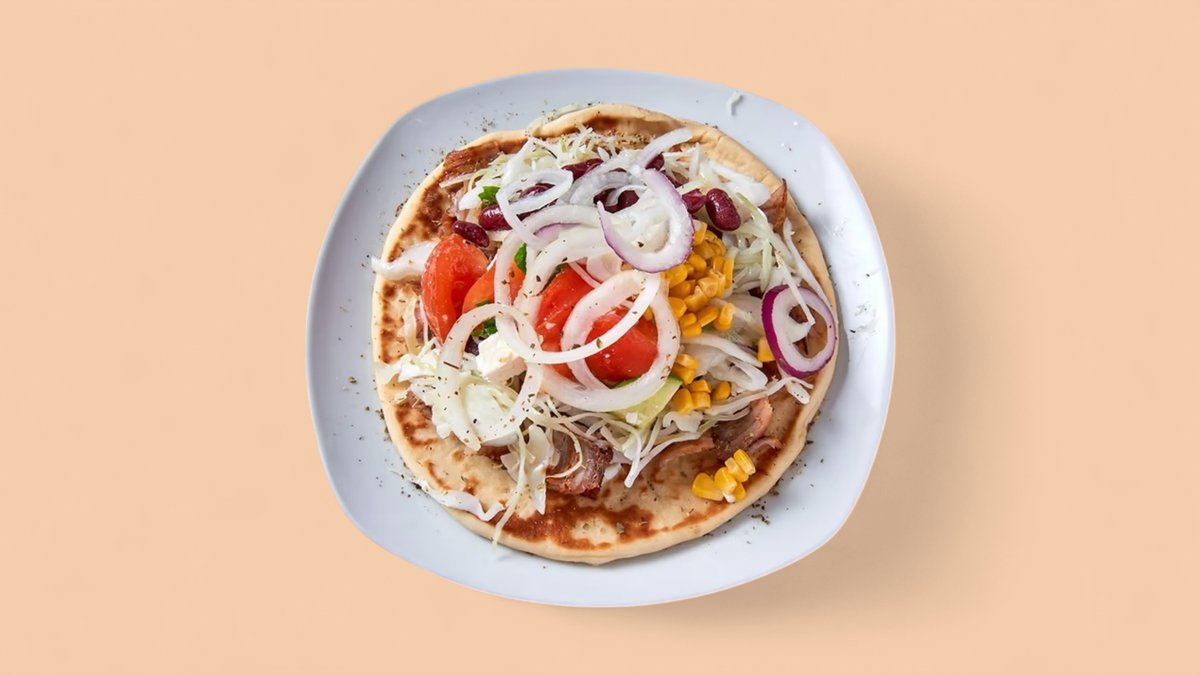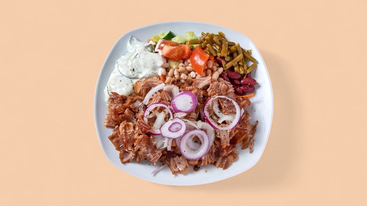 mit Schweinefleisch, gemischtem Salat und Tsatsiki