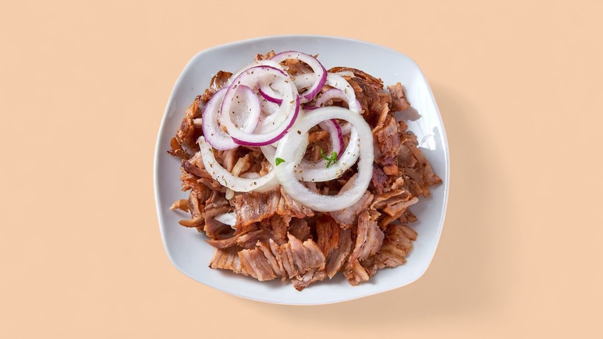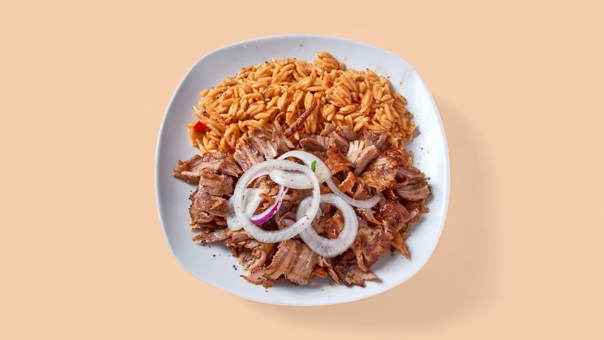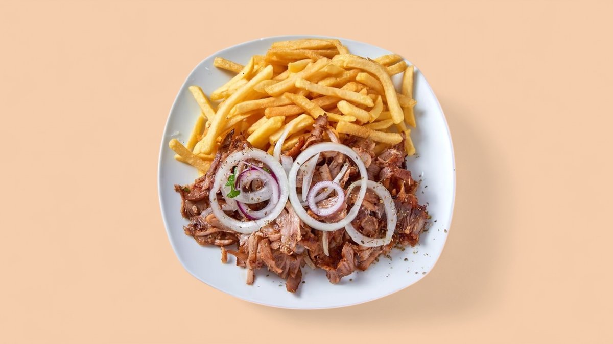 Gyros mit Pommes frites, tzatziki, Zwiebel und Gemischter Salat separat