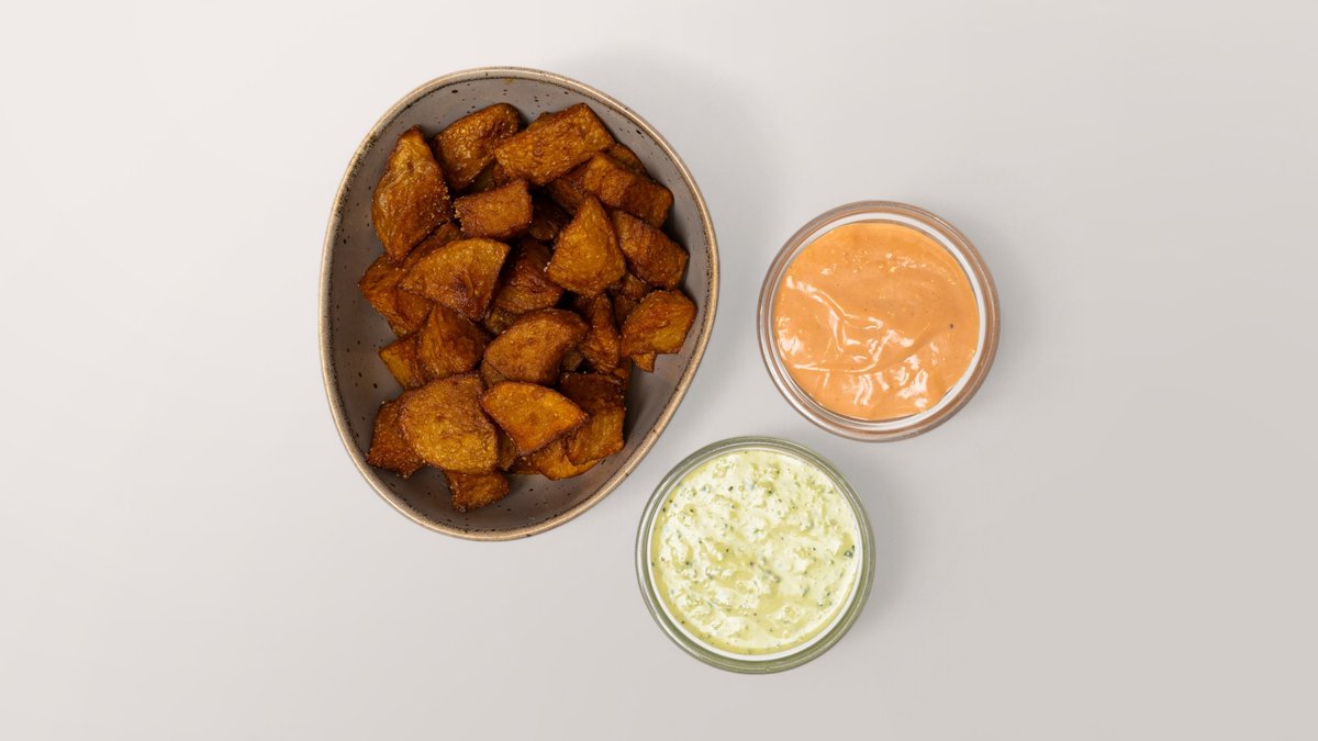 frittierte Kartoffelwürfel mit pikanter Soße